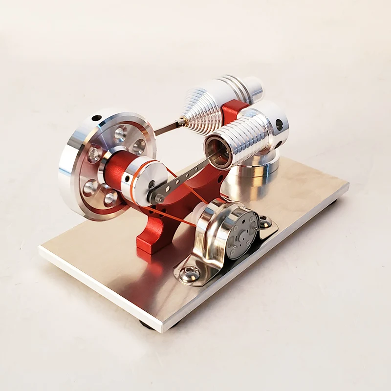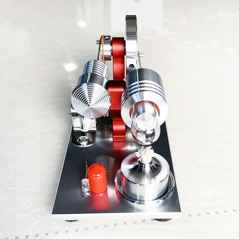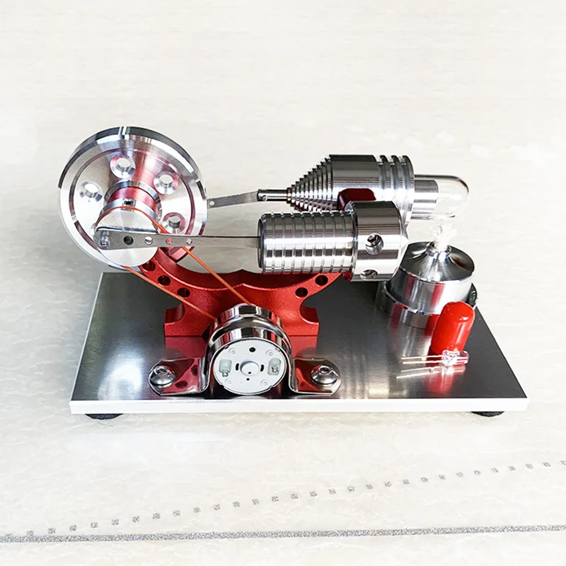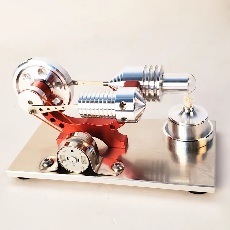 Experience the fascination of steam power with this 1:72 scale miniature Stirling engine model, crafted from durable metal and featuring a striking red engine color. The set includes the engine, alcohol lamp, spare test tube, and LED indicator light, making it ideal for educational demonstrations and scientific experiments. Designed for users aged 14 and above, this sleek, modern model showcases precision engineering with smooth, shiny surfaces, ribbed cylindrical components, and a reflective conical flywheel. Its minimalist industrial style combines functionality with aesthetic appeal, perfect for those passionate about science and power generation technology, allowing you to explore and visualize the principles of steam energy firsthand.