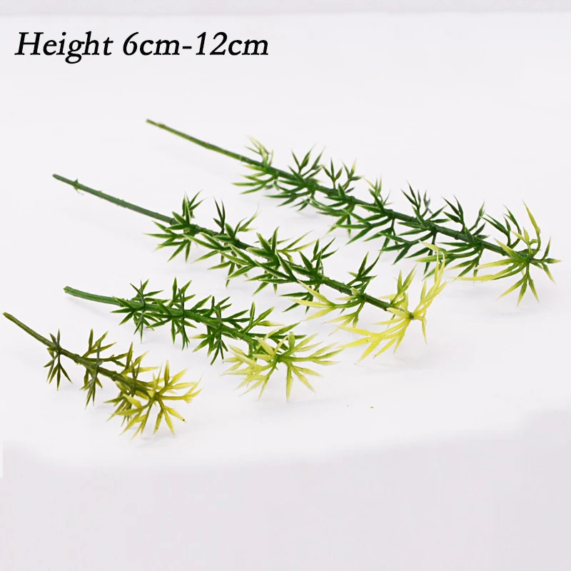 - Features slender, straight, segmented stems topped with clusters of narrow, pointed leaves that add lush foliage detail and authenticity.