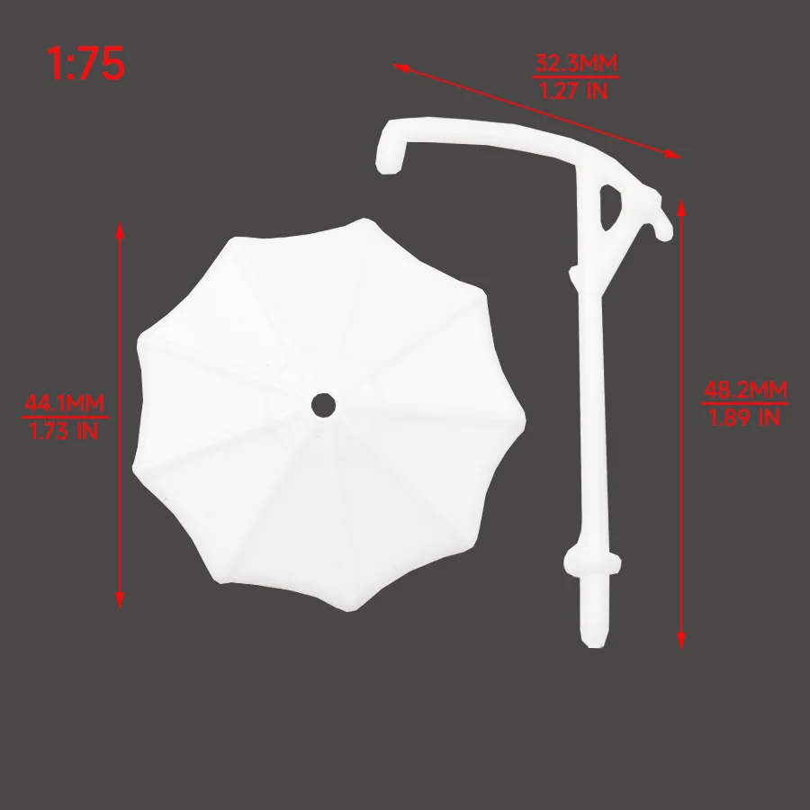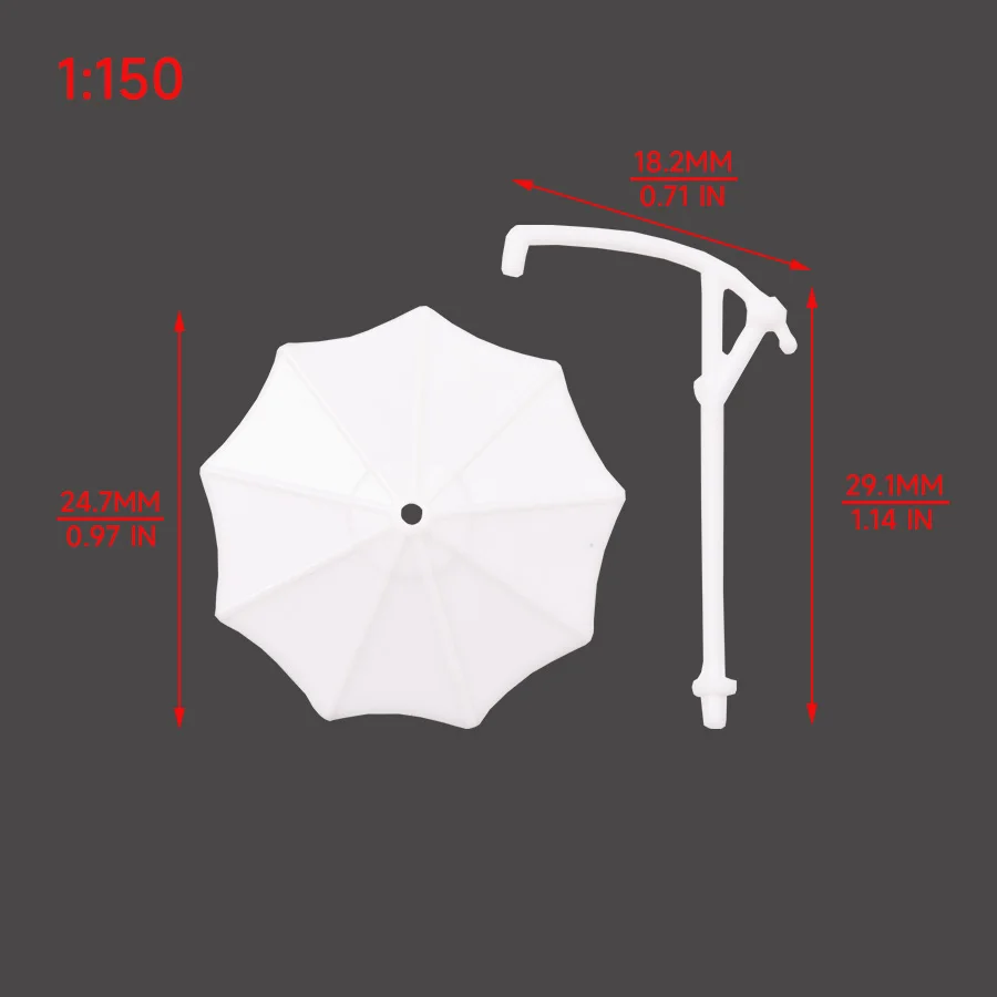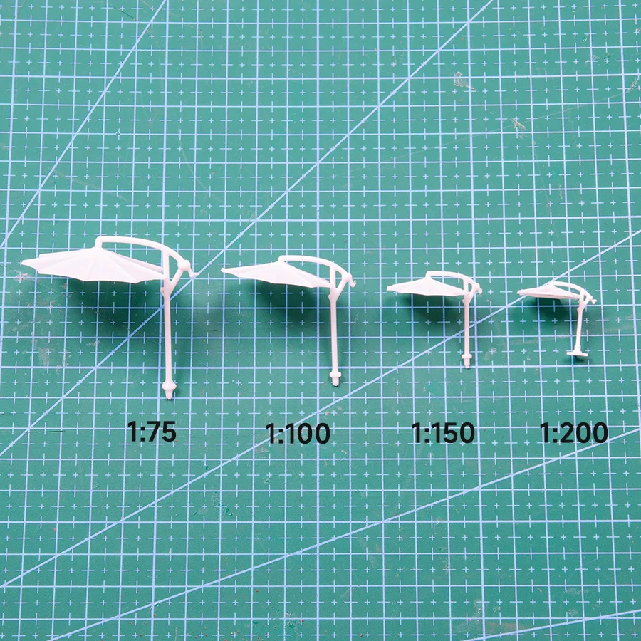 Elevate your miniature scenes with this set of 10 white ABS plastic beach umbrellas, available in scales of 1:75, 1:100, 1:150, and 1:200. Featuring a sleek, minimalist design with slightly curved, segmented canopies—some adorned with delicate scalloped edges—these lightweight models offer a realistic, decorative touch to dioramas and DIY projects. Supported by slender, straight poles with small rounded bases, they combine simplicity and elegance perfect for enhancing any miniature beach or outdoor scene. Crafted for ages 14 and up, these unisex umbrellas are chemical-free and specifically designed for model enthusiasts seeking high-quality accessory details.
