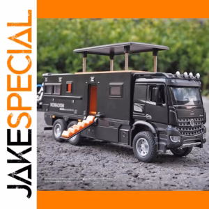 Experience the thrill of owning a highly detailed miniature of the classic Benz camper RV motorhome. Crafted from durable diecast metal, this 1:24 scale model captures the rugged look and sleek design of the original vehicle. Its black finish features realistic accents like transparent tinted windows, printed decals, and vivid orange door and window frame details, making it a true visual highlight. The model’s boxy camper section boasts a flat roof with metallic support rods, realistic vents, panel lines, and a tiny side door with stairs. Equipped with sound and light effects, plus pull-back movement, it offers engaging fun and authentic appeal. Perfect for collectors and enthusiasts eager to add a lifelike Benz camper to their display or play collection.