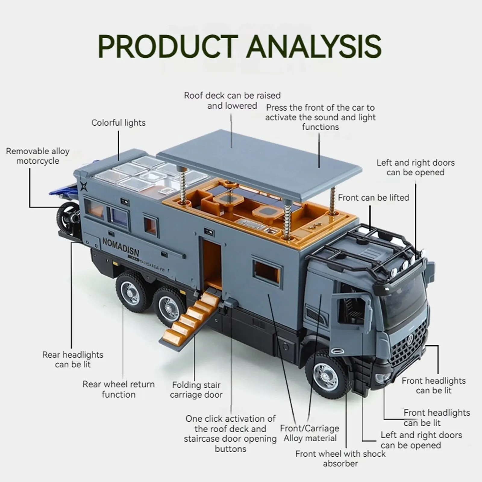 Imagine having this highly detailed Benz camper sitting proudly on your shelf, sparking conversations and admiration from friends and fellow collectors. Its realistic design, combined with functional sound and light features, makes it not just a toy but a true miniature masterpiece. Whether you’re a dedicated collector or simply love unique vehicle models, this scale diecast camper will elevate your collection. Don’t miss the chance to own this authentic, versatile miniature that combines craftsmanship, playability, and visual appeal. Make it yours now to enjoy rich detail and lasting quality!