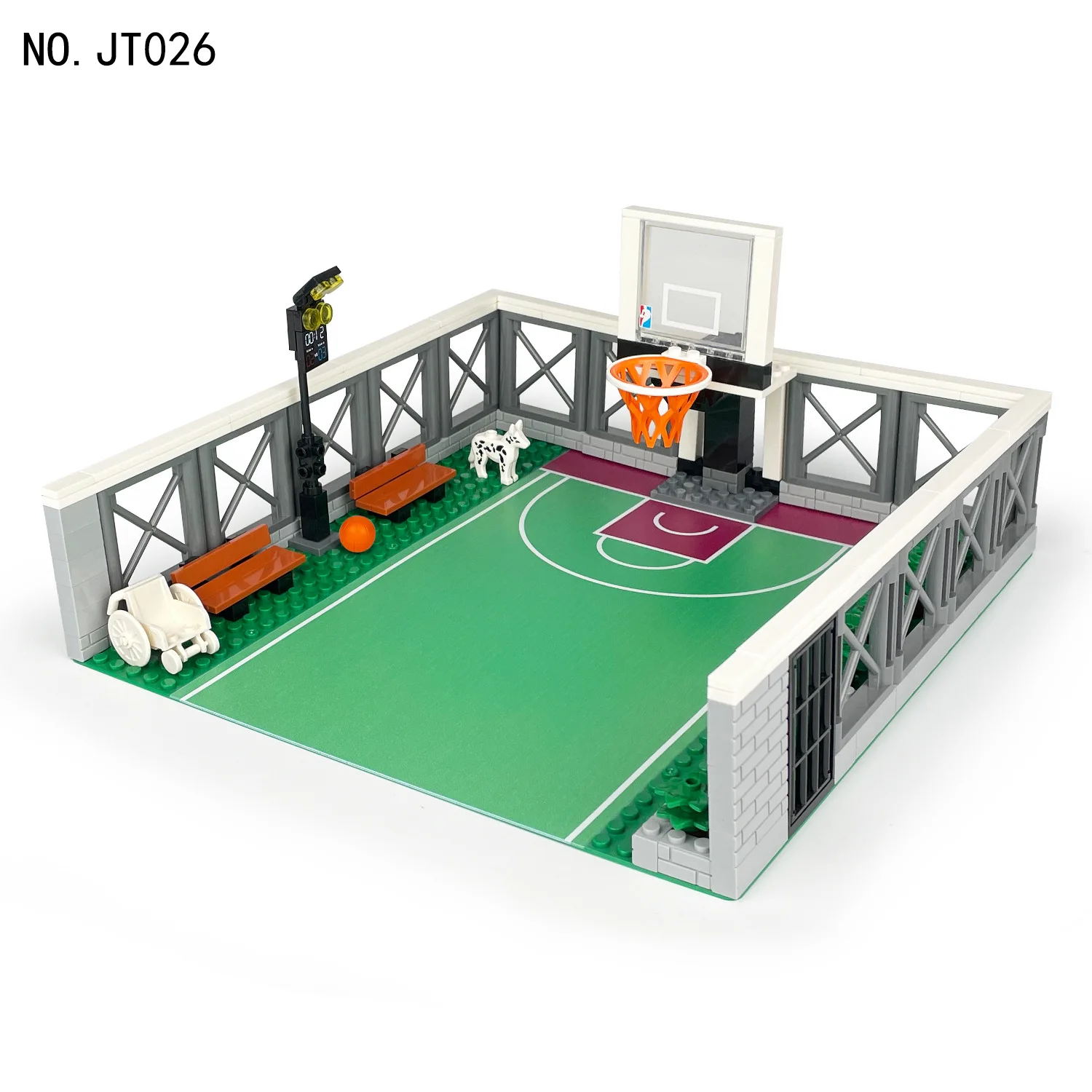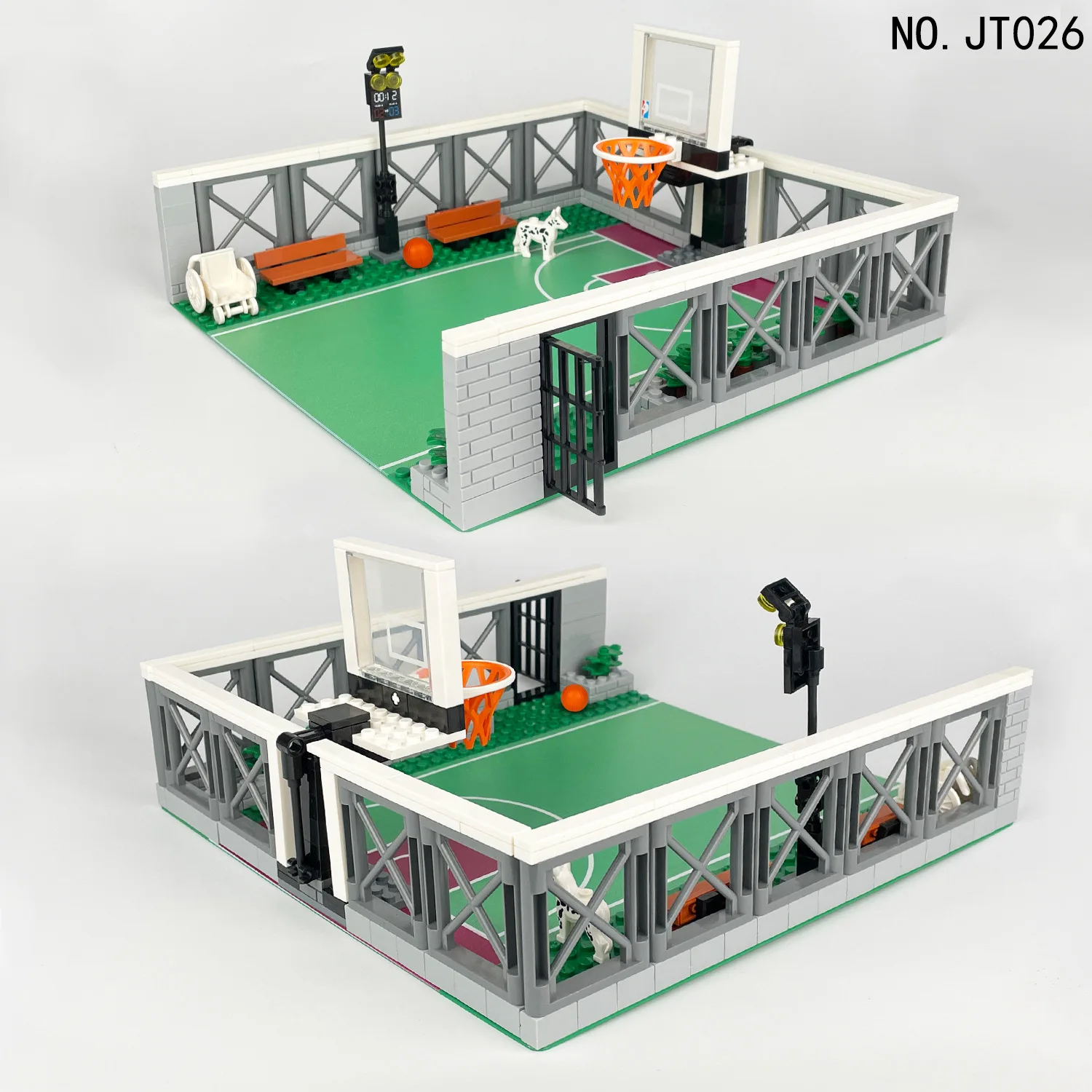 - The model includes 8 vibrant pieces in the JT026 color variant, accurately depicting a lively campus basketball scene with a green court, white boundary lines, and pink/maroon key areas for visual appeal.