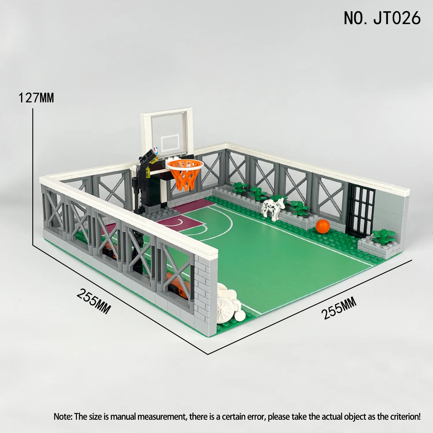 Immerse yourself in a vibrant miniature sports scene with this detailed campus basketball court building set. Crafted from high-quality plastic, it features colorful, self-locking ABS bricks that replicate a real court’s lively atmosphere. The bright green playing surface, complemented by white boundary lines and pink/maroon key areas, brings vivid realism to your collection. Orange elements, like the basketball hoop and ball, add a pop of energetic color, making the scene dynamic and lifelike. The set also includes accessories such as a bench, green plants, and a basketball figure, perfect for creating an authentic sports environment. Once assembled, you’ll enjoy a charming, detailed display that sparks imagination and sports enthusiasm.