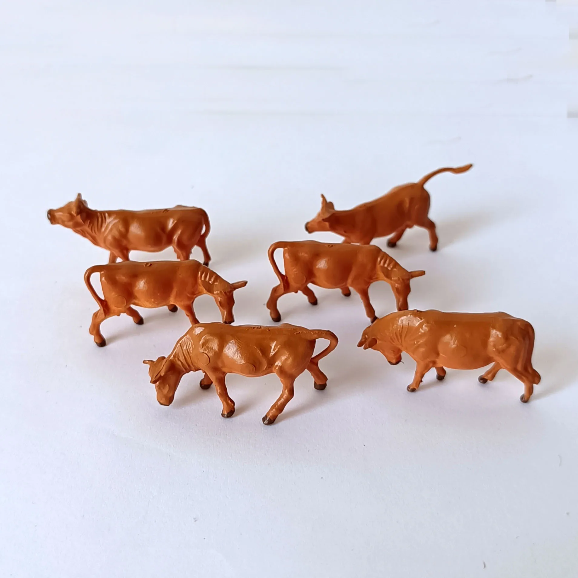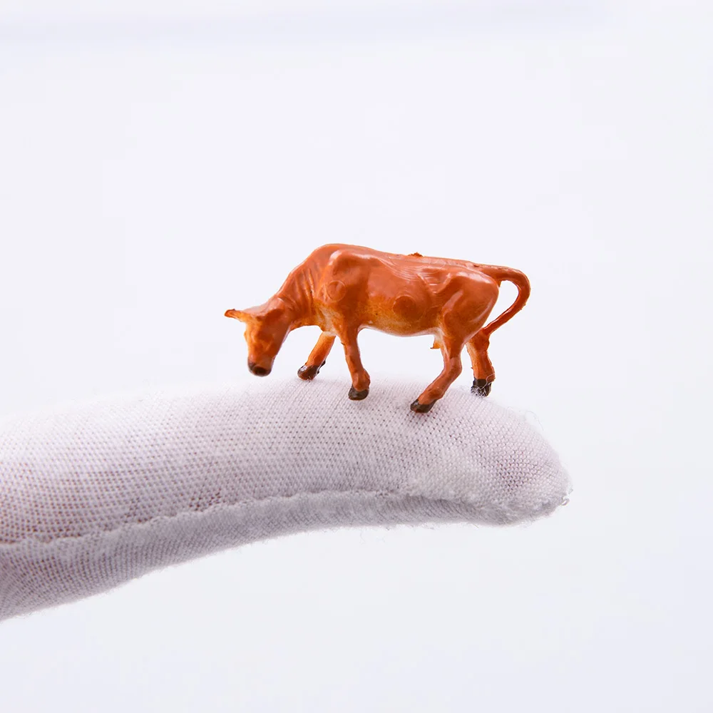 Introducing the Simulation Miniature Animals Cattle Model set, featuring six meticulously crafted ABS plastic cow models, designed in a realistic scale of 1:87. These charming figures come in varying shades of brown with white patches, showcasing realistic poses such as standing and grazing. Perfect for enhancing your sand table layouts or diorama kits, these cattle models are an ideal addition for creating detailed farm scenes. With model number HDD-BoxCow, each piece reflects exceptional craftsmanship and attention to detail, ensuring they look stunning in any display or project. Enjoy the joy of building your miniature world with these exquisite models.
