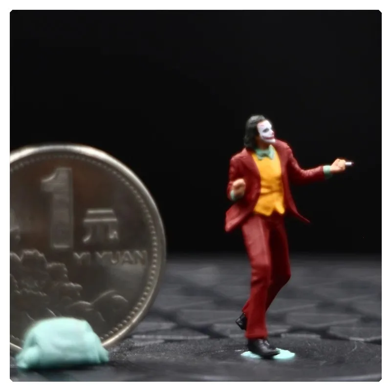 Imagine adding a vibrant touch to your collection with this miniature clown figure. Crafted from high-quality resin, this intricately designed piece features a striking red suit and orange vest complemented by detailed facial features. Measuring approximately 2.6-3 cm for the 1/64 scale or 1.9-2.2 cm for the 1/87 scale, it stands dynamically posed to capture delightful moments through micro photography. Carefully handmade, this figure exemplifies commitment to craftsmanship, making it an ideal piece for any enthusiast. Whether displayed alone or as part of a larger scene, it invites smiles and celebration.