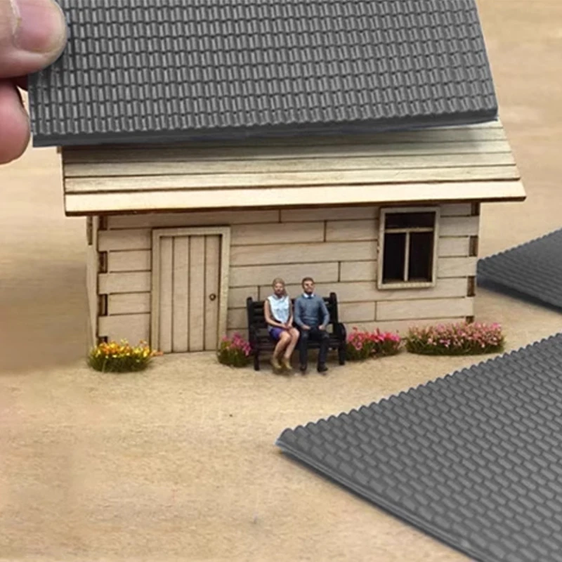 Enhance your miniature architectural models and dollhouses with this set of three high-quality PVC simulation roof tiles, featuring textured, corrugated surfaces in realistic shades of brown that range from light coffee to darker hues. Designed for scales from 1:25 to 1:100, these flexible tiles are easily cut with an art knife to customize your project—perfect for exterior landscapes and roof covers. Made from durable, fire-resistant plastic, each set provides intricate detailing and depth, bringing authenticity and charm to your miniature creations. Elevate your craftsmanship with these versatile, realistic tiles, suitable for builders and hobbyists aged 14 and up.