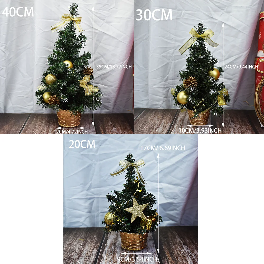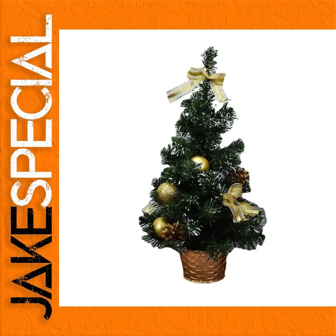Bring your holiday spirit to your space with this beautiful mini artificial Christmas tree. Standing at 20 cm or 30 cm tall, it’s perfect for tabletops or small areas, offering a charming and festive touch. Crafted with lush, dark green plastic branches that mimic real pine needles, it exudes natural elegance. Adorned with shiny gold ornaments, textured glittery gold balls, and nestled with gold-finished pinecones, it radiates warmth and sophistication. Topping the tree is a delicate gold ribbon bow with trailing ribbons, completing its refined look. Placed in a woven basket-style base, this tree adds a cozy, classic charm to your decor. Its versatile style makes it ideal for holiday celebrations, gifting, or enriching your seasonal ambiance.