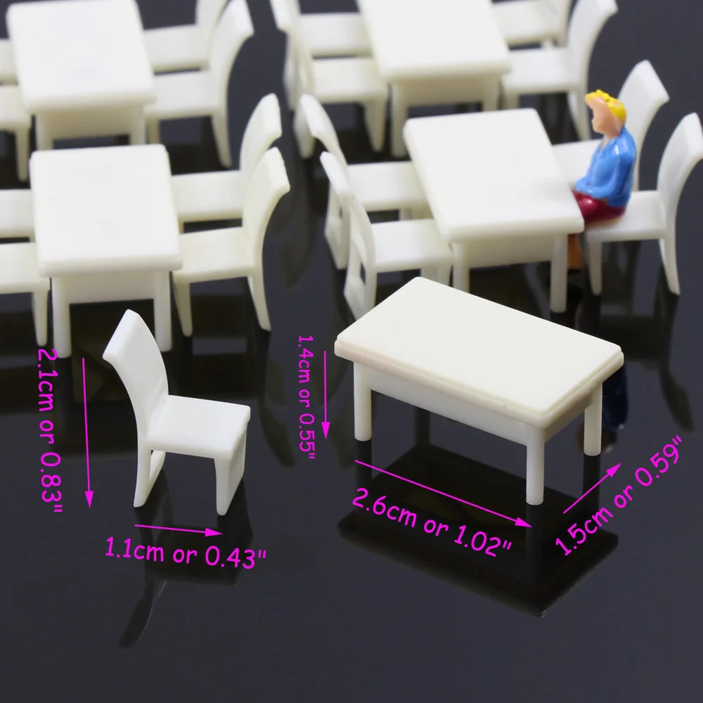 Enhance your model railway or miniature scene with this elegant set of six white rectangular dining tables and 24 matching chairs, crafted from durable PC plastic. Designed at a 1:50 scale for O gauge layouts, these sleek, minimalist pieces feature smooth finishes, rectangular tabletops with rounded edges, and modern chairs with gently curved backrests and crisp rectangular cut-outs. Perfect for decorating living rooms, educational displays, or detailed interior scenes, their contemporary style adds a sophisticated touch. Suitable for adult collectors and hobbyists, these versatile miniature furniture pieces promise both aesthetic appeal and practical durability for your creative projects.