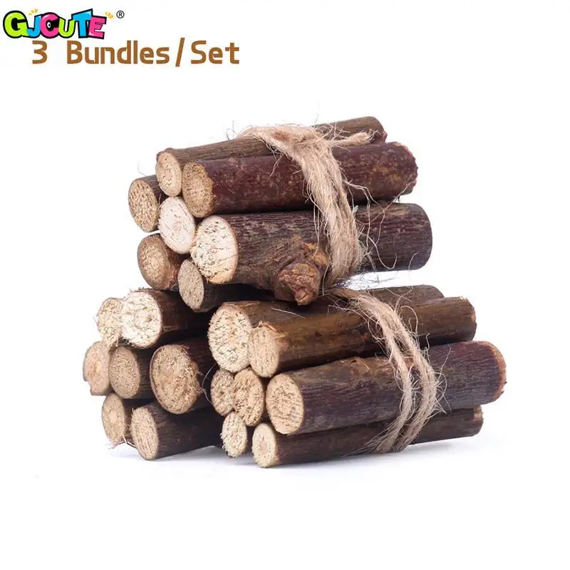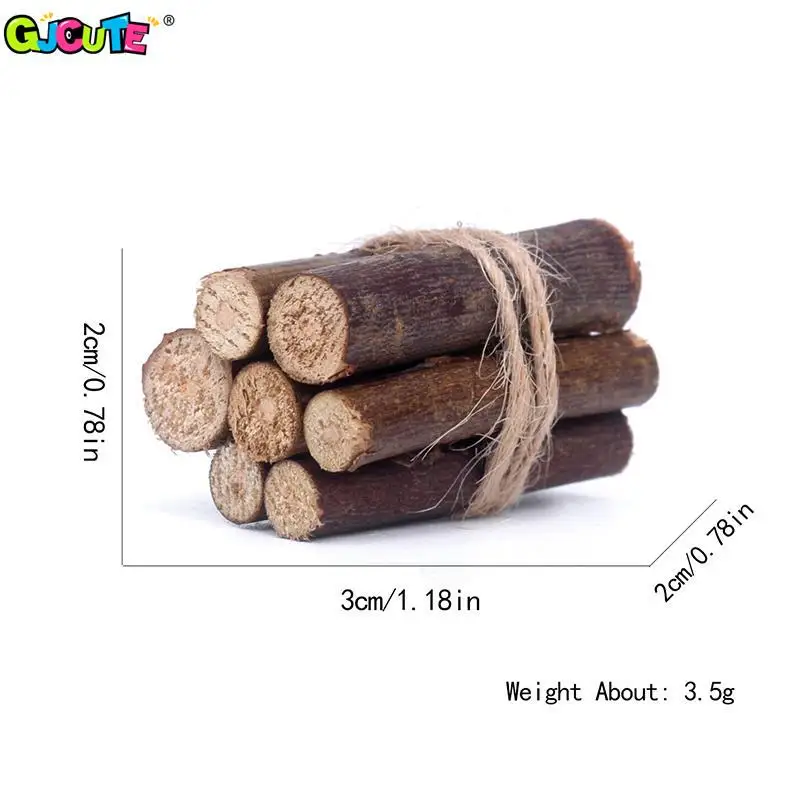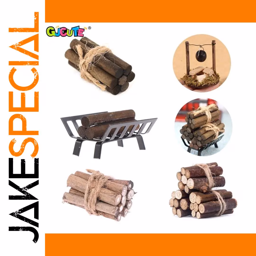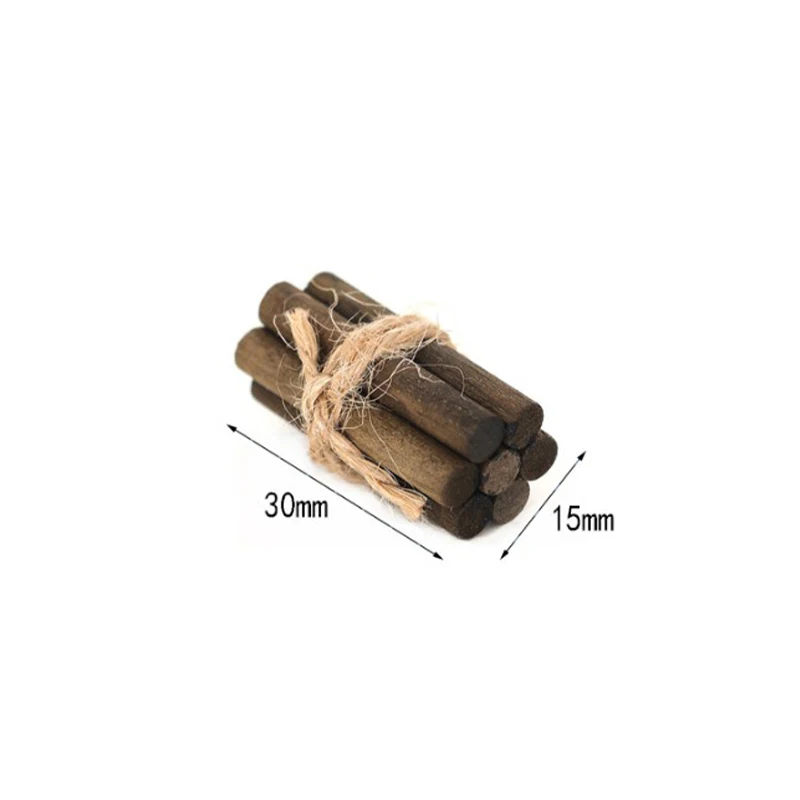 Experience the warm, rustic charm of this miniature bonfire, perfect for enhancing your dollhouse scene. Crafted from high-quality wood, this detailed piece measures 3cm (1.18″) long, featuring a natural, lifelike design with smooth, cylindrical logs displaying cross-sectional rings. Available as a single piece or in a set of three bundles, each bundle emphasizes a handcrafted, organic aesthetic with varied shades of brown, from light to dark, tied with rough-looking string. Some bundles are accented with moss or faux grass bases, adding an outdoor ambiance. Whether you're creating a cozy cabin scene or an outdoor gathering, this accessory brings realism and warmth to your miniature world, inviting you to imagine the crackling fire and lively moments.