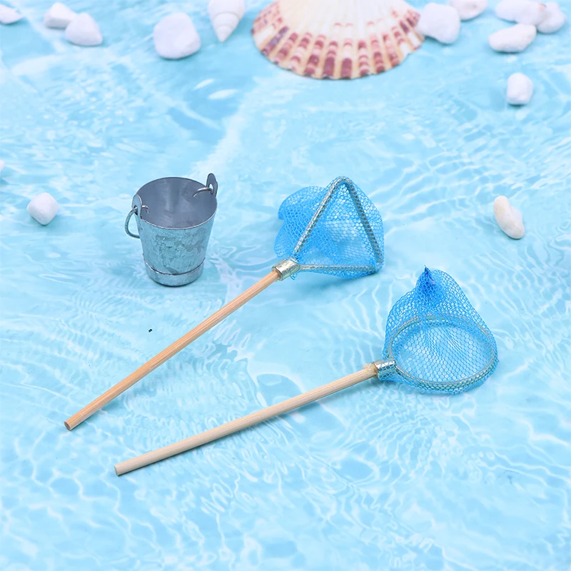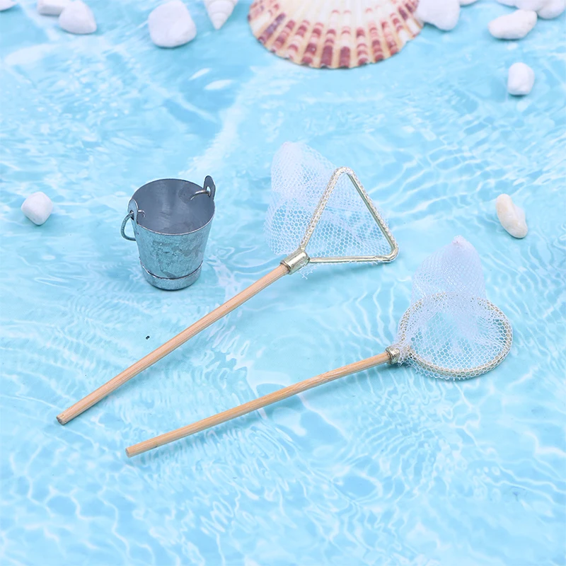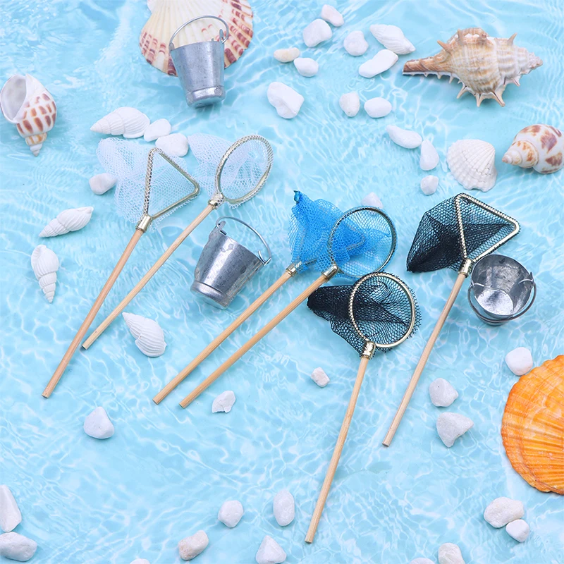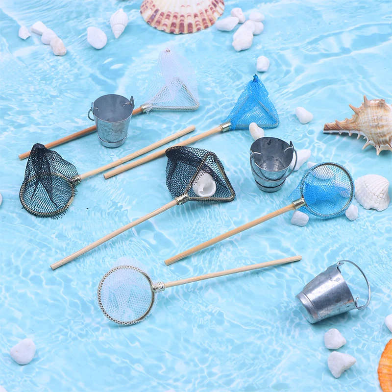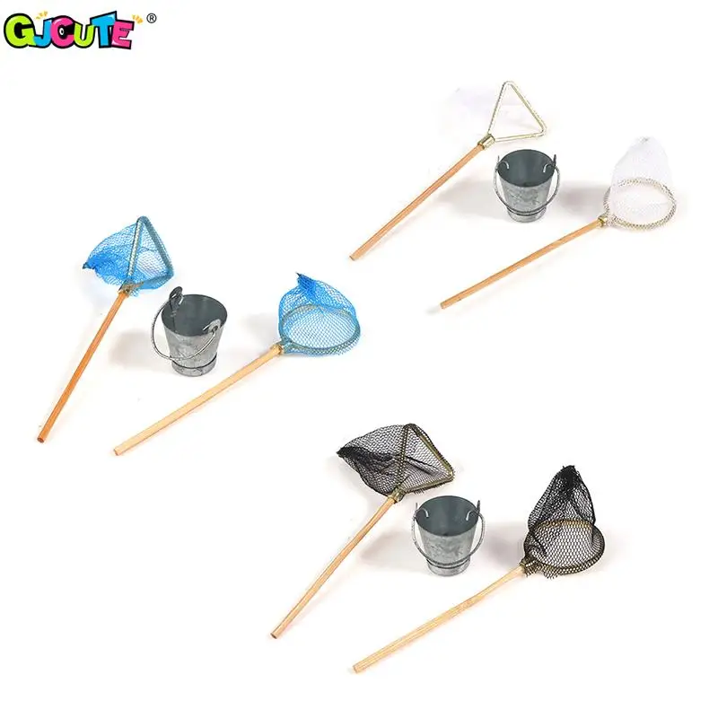 Step into a charming miniature world with this beautifully crafted 1:12 scale dollhouse fishing accessories set. Designed with exquisite attention to detail, it includes slender fishing net rods and a small iron bucket, perfect for outdoor scene decoration. The rods measure approximately 9.8 centimeters, made from smooth, realistic wood or metal, and feature fine, lightweight mesh nets matching their colors—such as soft white, vibrant blue, and classic black. The metal bucket, about 2.5 centimeters high and 2 centimeters wide, has a sleek metallic gray or black finish, with subtle handles and a slight lip. This set offers a lifelike, vintage-inspired charm, ideal for creating authentic miniature fishing or outdoor scenes that will delight dollhouse enthusiasts and collectors alike.