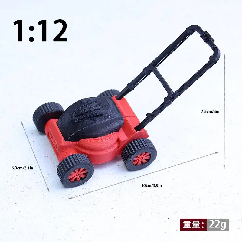 - Highly detailed miniature lawn mower, scaled perfectly for 1:12 and 1:18 dollhouses, made from durable plastic, visually realistic, and crafted for making your dollhouse scenes lively.