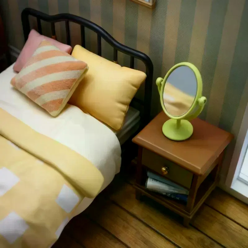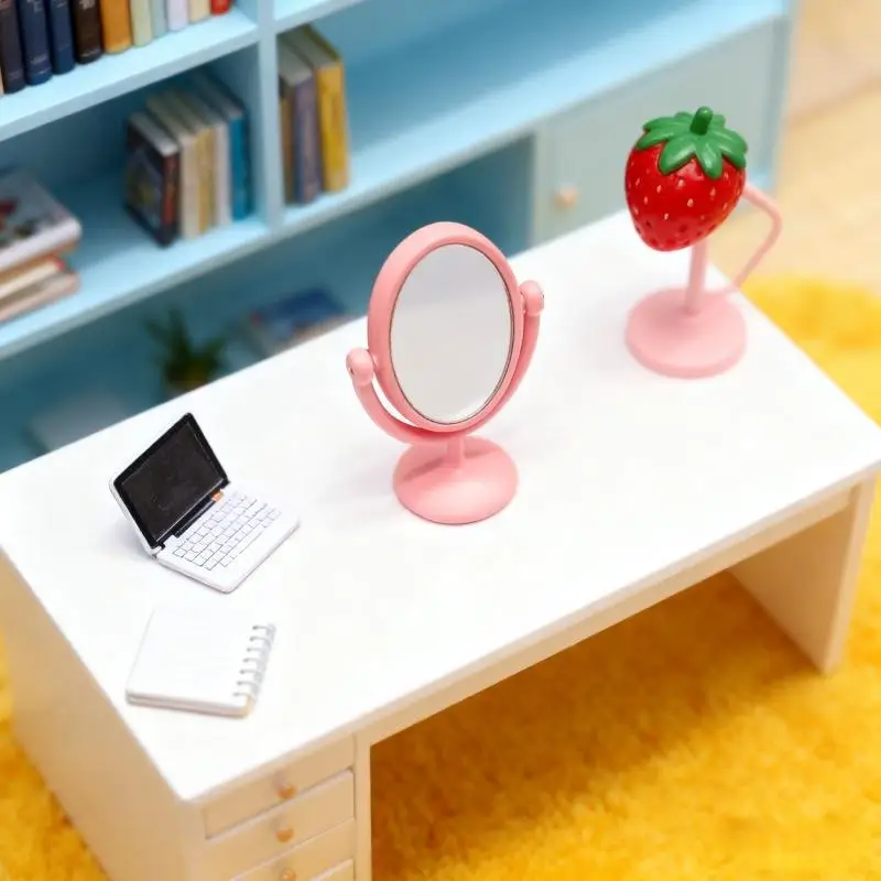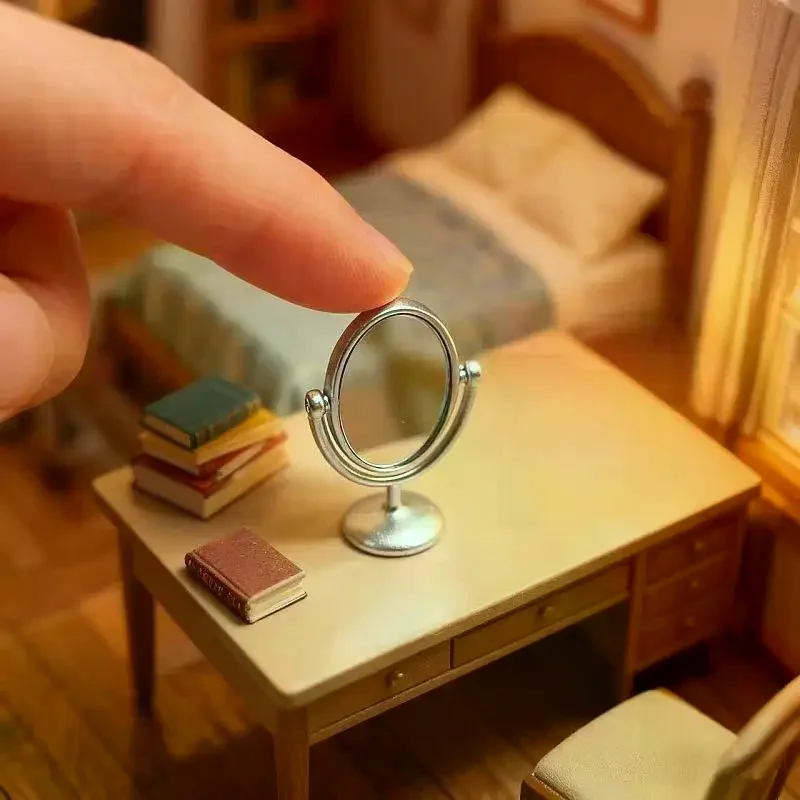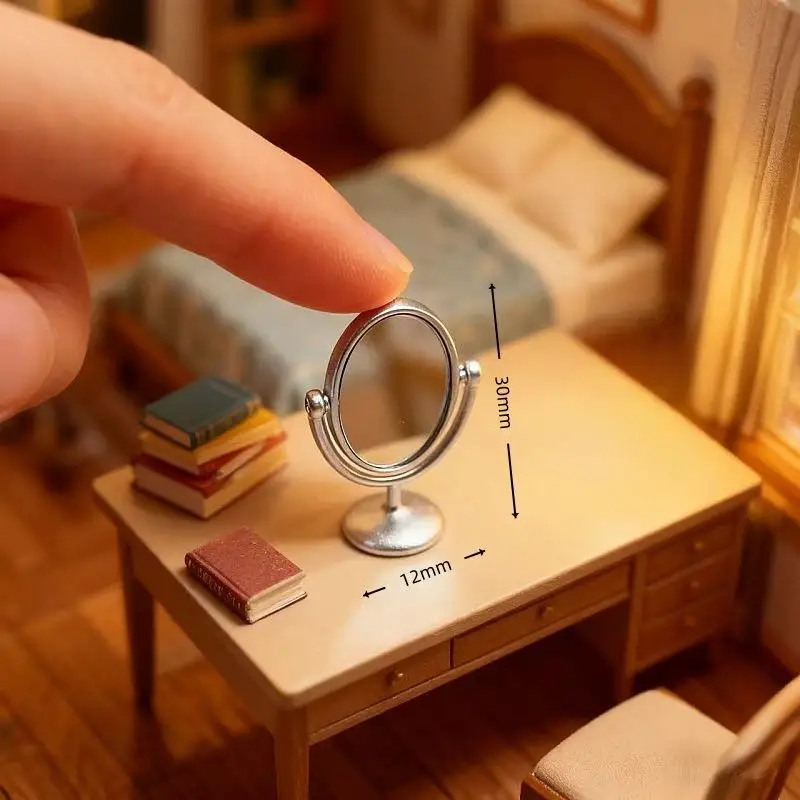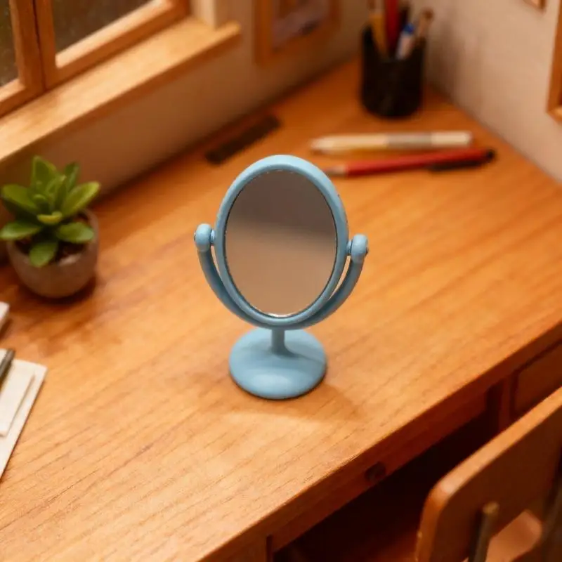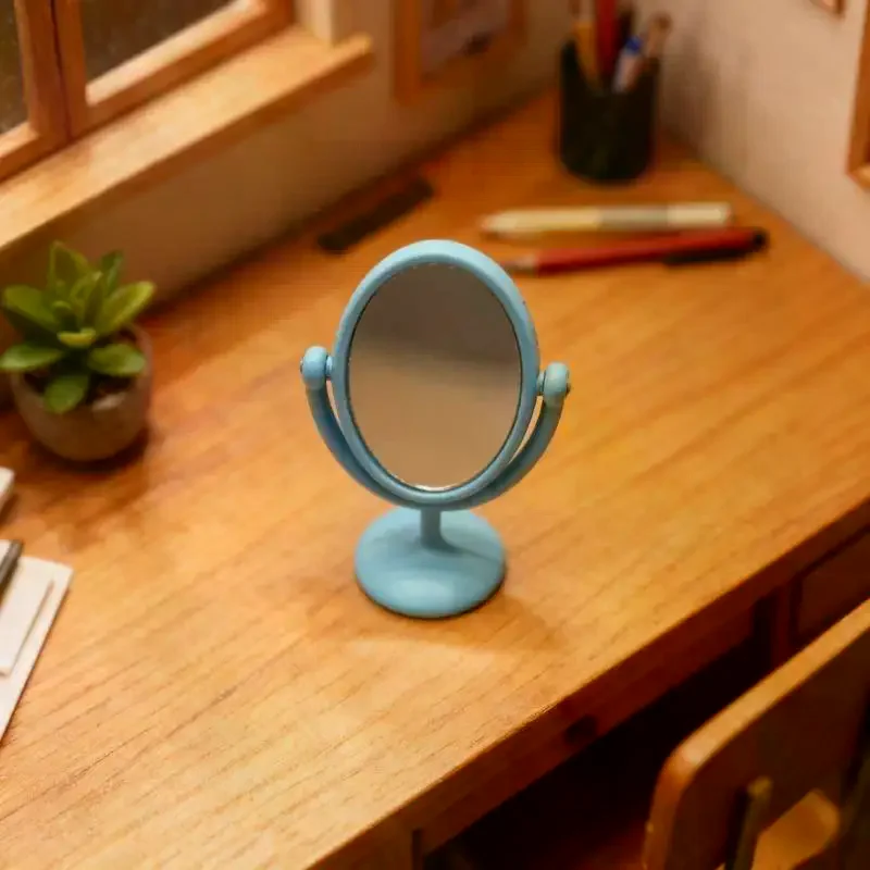 Step into a world of charming vintage elegance with this miniature dollhouse mirror dressing table. Crafted with exquisite attention to detail, this tiny vanity features a delicate oval-shaped mirror framed in polished gold, mounted on a graceful matching base. The mirror measures just 12 by 30 millimeters, perfectly scaled for 1:12 dollhouse scenes. Its flip-cap design allows a 360-degree rotation, giving you flexible positioning for your miniature decor. Enhance your dollhouse or collectible scene with these refined accessories, available in a variety of colors—blue, gold, green, pink, and silver—to match any aesthetic. This piece brings warmth and nostalgia, transforming any display into a cozy vintage retreat.