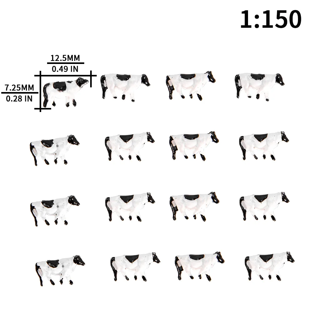 Enhance your diorama, sand table, or educational display with this set of realistic miniature model cows. Available in sets of 10, 30, or 50, these hand-painted cows feature a detailed brown color in a 1/150 scale (approximately 11.2mm to 13mm in height). Made from durable ABS plastic, each model exhibits smooth surfaces, authentic posture variations, and natural detailing ideal for farm scenes or model railway layouts. Designed for hobbyists aged 14 and above, these unisex figures are CE certified for safety, offering a charming and lifelike addition to your creative projects.