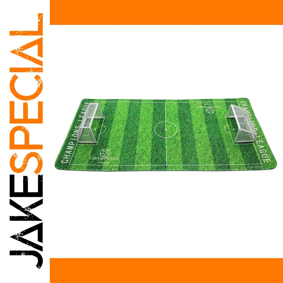 This vibrant football play mat is designed for tabletop games and toy displays, allowing you to immerse yourself in exciting play scenarios. The detailed green surface simulates a well-maintained pitch, complete with realistic grass textures and stripes. Featuring printed “CHAMPIONS LEAGUE” branding, this mat brings the thrill of the tournament into your home. Paired with two silver goalposts and a central circle, it's perfect for creating vivid games with friends or displaying your collectible diecast cars and figures. Transform your gaming experience and watch as your creativity flourishes on this dynamic surface.