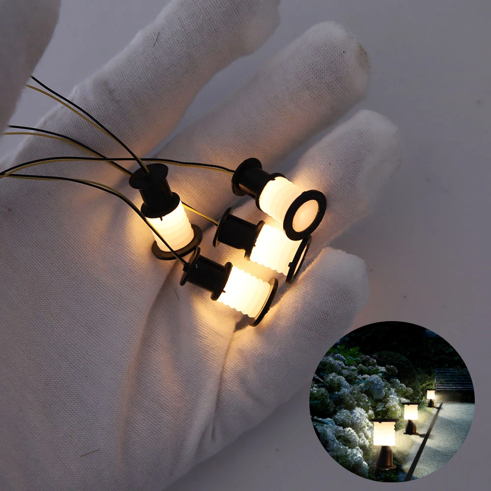 Enhance your miniature landscape or railway diorama with these three realistic ABS plastic garden lamps, each featuring a sleek black cylindrical base and flared top design. Emitting a warm white glow at 3V to 4.5V, these compact lamps create a cozy, inviting atmosphere in your scene. With approximately 38cm long cables—positive terminal indicated by a longer wire and negative by a shorter one—they are easy to install and connect. Ideal for sand table layouts and dioramas, these inset lights offer a simple, functional addition to your hobby projects, providing authentic lighting effects that bring your miniature world to life with subtle elegance.