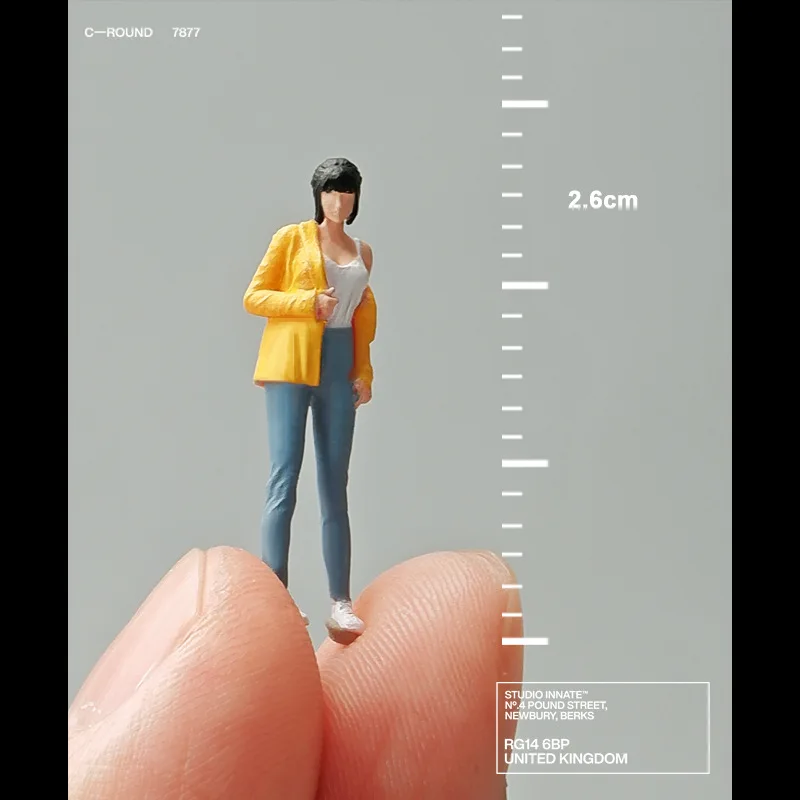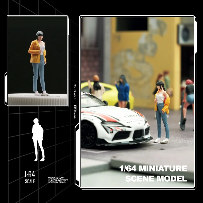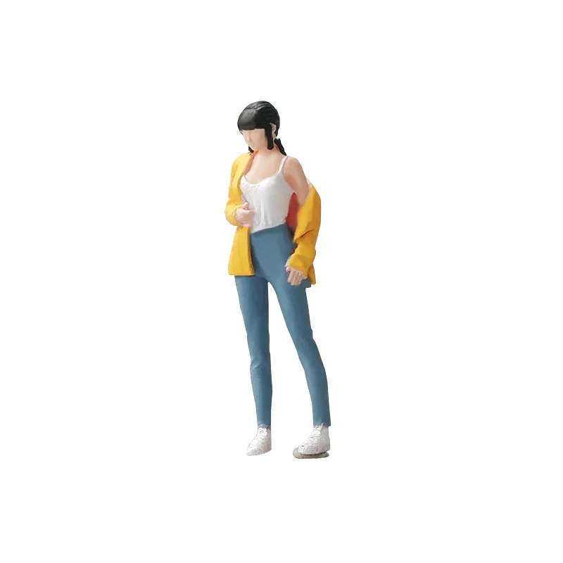This exquisite miniature figure model captures a charming girl in a contemporary outfit, perfect for enhancing your creative photography displays. Standing at approximately 2.6 cm high with a 1:64 scale, this resin figure features a fitted white top paired with a yellow sweatshirt, and light blue jeans, all accentuated by white shoes. The meticulous manual coloring and polishing give her a lifelike appearance, while her flowing black hair, styled in a playful manner, adds to the dynamic aesthetic. Ideal for dioramas or thematic collections, this figure is suitable for ages 14 and up and is perfect for movie and TV enthusiasts.