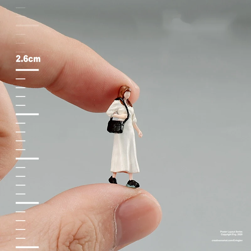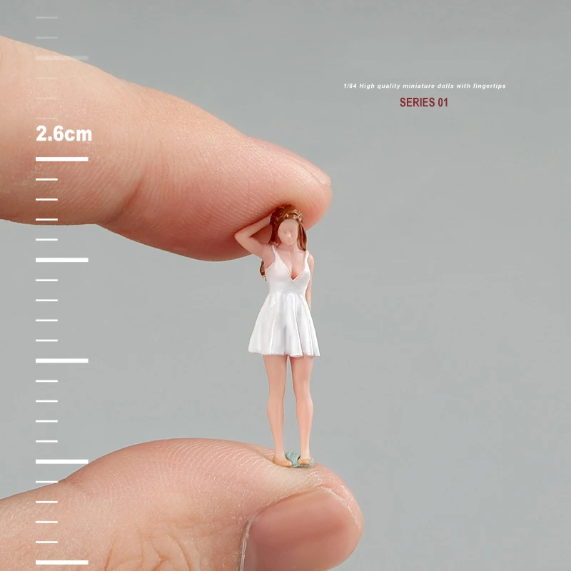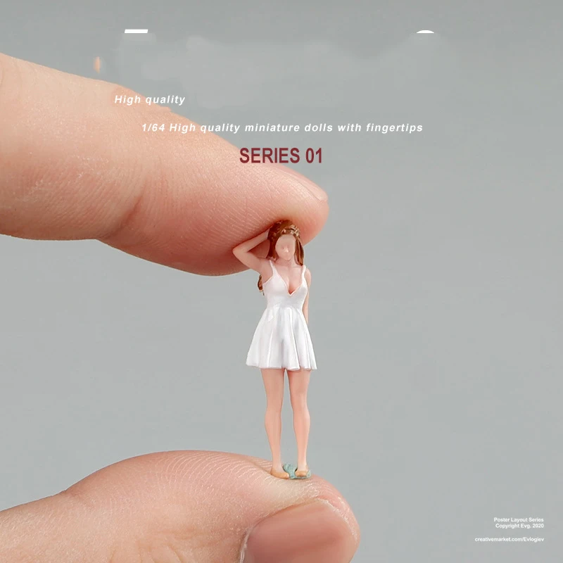 This exquisite miniature figure of a girl stands at 2.59 cm (1.02 in) tall, crafted from high-quality hand-painted resin. Dressed in an elegant white sleeveless dress and featuring long, wavy brown hair, she adds a charming touch to any diorama, DIY project, or car model decoration. Perfect for creative photography and home decor, this delicate figure is designed for use with 1/64 scale car models and miniature scenes. As a finished product, it requires careful handling due to its fragile nature, making it an ideal collectible for enthusiasts aged 14 and older. Not waterproof and not a toy, it is meant for adult collectors.