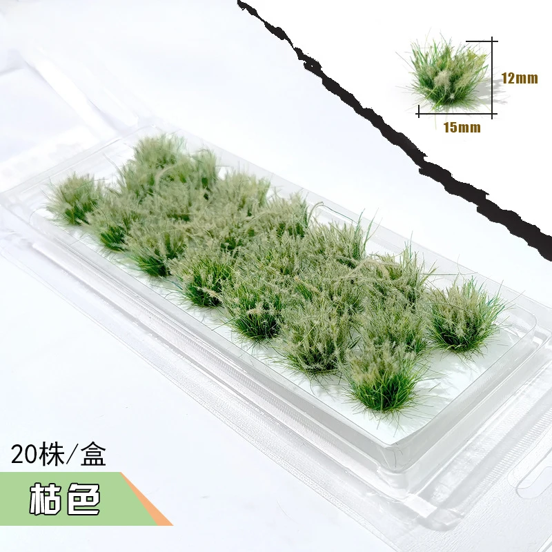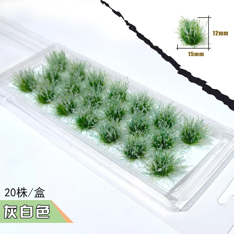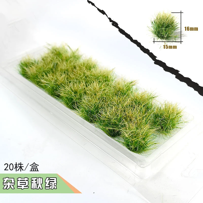 - Contains 20 plastic grass clusters with heights of 12mm and 16mm for realistic scene creation.