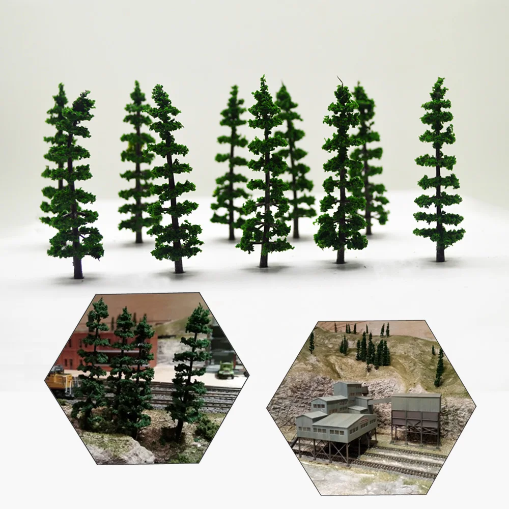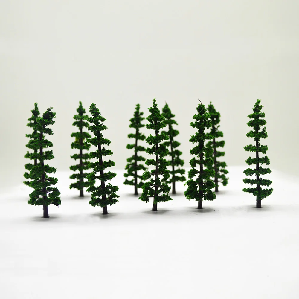 Transform your landscapes with this set of ten beautifully crafted miniature green trees, each standing about 8.5 centimeters tall. These trees feature vibrant, bright green foliage arranged in conical, layered shapes that evoke the look of real evergreen trees. Made from smooth, durable ABS plastic, they possess a uniform appearance while slight irregularities in their branch extensions add a realistic touch. Perfect for enhancing railway layouts, diorama scenes, or architectural models, these environmentally safe trees provide a natural but stylized effect. Imagine creating detailed, life-like landscapes—these trees will bring your scenes to vivid life with their realistic appearance. Their compact size makes them ideal for fine-scale modeling and intricate scene compositions.