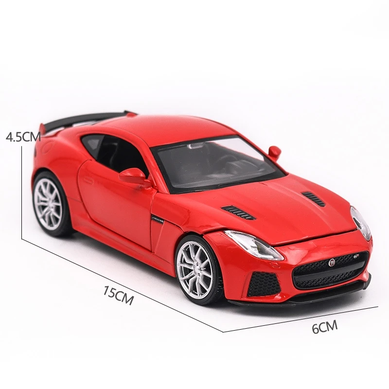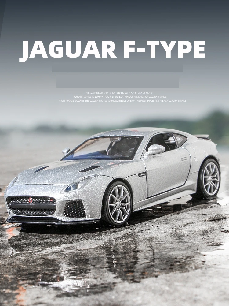 Immerment yourself in the sleek world of automotive design with this detailed miniature Jaguar F-Type. Carefully crafted at a 1/32 scale, this model measures approximately 8 centimeters long, capturing the elegant aerodynamic contours and sporty silhouette of the real vehicle. Its shiny silver finish highlights the refined curves, complemented by sharp headlights, a bold grille with the Jaguar emblem, and sculpted vents on the hood. Available in vibrant hues like pink, blue, red, silver, and white, this model adds a splash of color to any collection. The durable metal construction ensures a realistic weight and robust feel, making it perfect for display or active play. Its eye-catching details and functional features make it an irresistible piece for adults who appreciate craftsmanship and style.