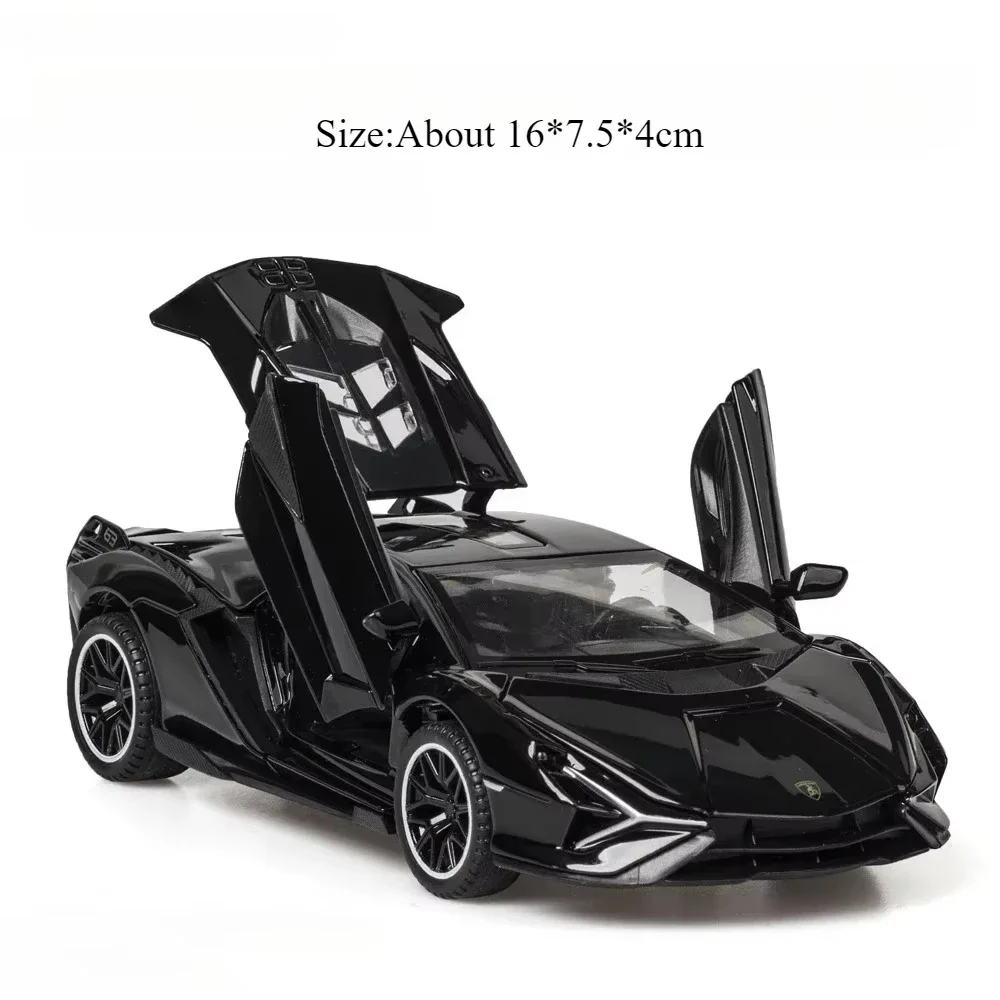 Imagine the pride you'll feel owning this beautifully crafted miniature Lamborghini Sian. Whether displayed on a shelf or used for interactive play, its intricate details, functional features, and vibrant colors make it a captivating centerpiece. This model captures the essence of the original supercar and brings it into your space with style and precision. Better yet, as you admire its glossy finish and realistic components, you'll already be envisioning it as part of your collection or display. Don't wait—add this high-performance, stylish miniature to your collection today and enjoy owning a true automotive masterpiece.