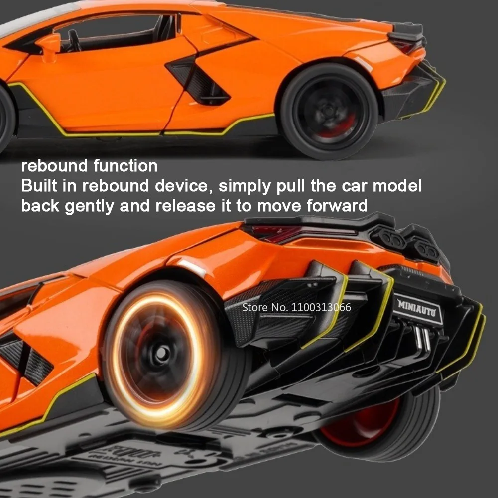 Experience the thrill of high-performance racing with this 1:32 scale miniature supercar model, featuring a zinc metal body, plastic chassis, and rubber tires. Measuring approximately 15.7 x 7.3 x 3.8 cm for the Revuelto version and 15.5 x 8.2 x 4.4 cm for the 720S, this detailed replica includes opening doors, sound and light effects, and a pull-back motor for realistic fun. Available in vibrant colors such as orange, green, gold, purple, red, and gray, it offers durability and electronic features powered by included batteries. Perfect for enthusiasts and collectors aged 14 and above, this educational and visually striking model embodies craftsmanship and excitement.
