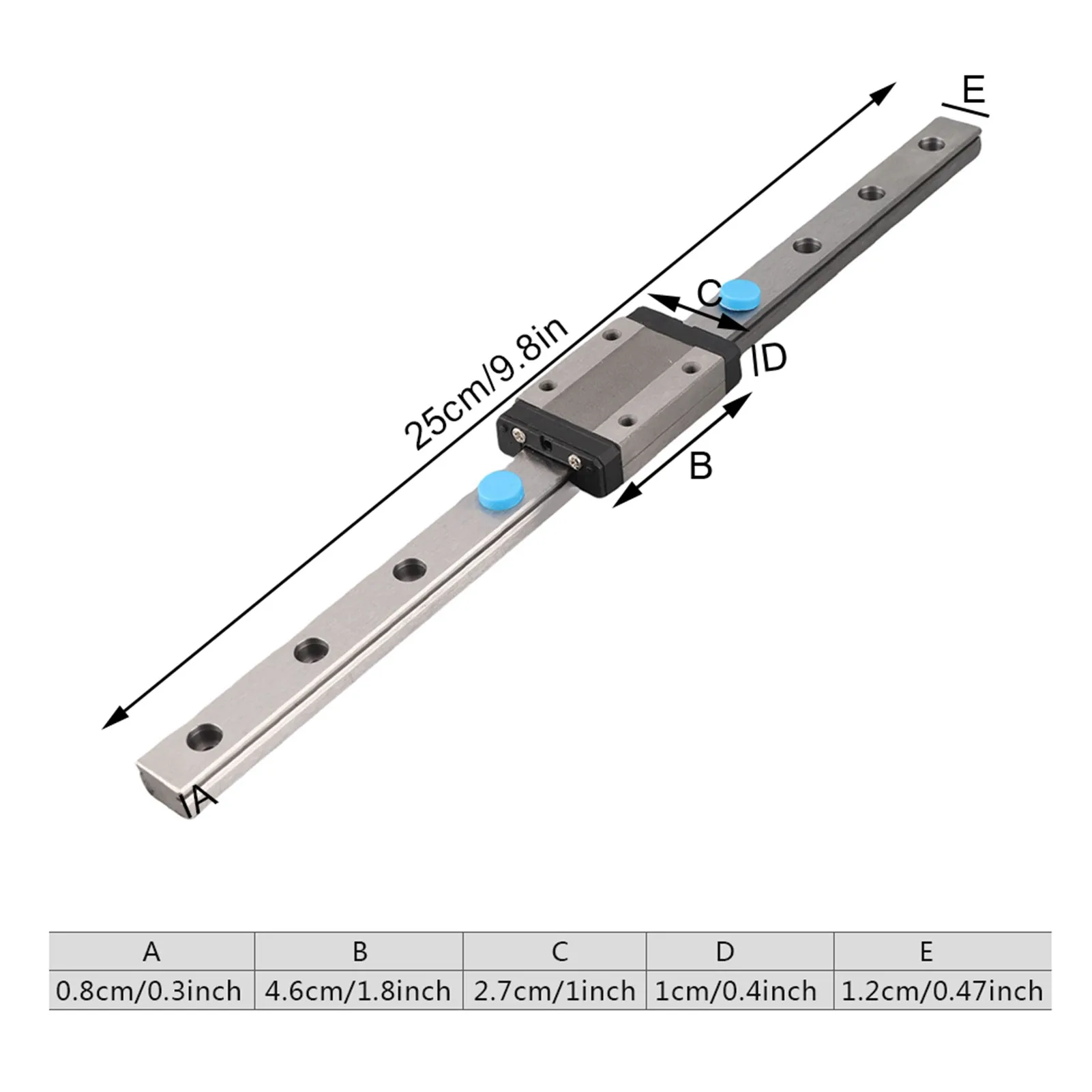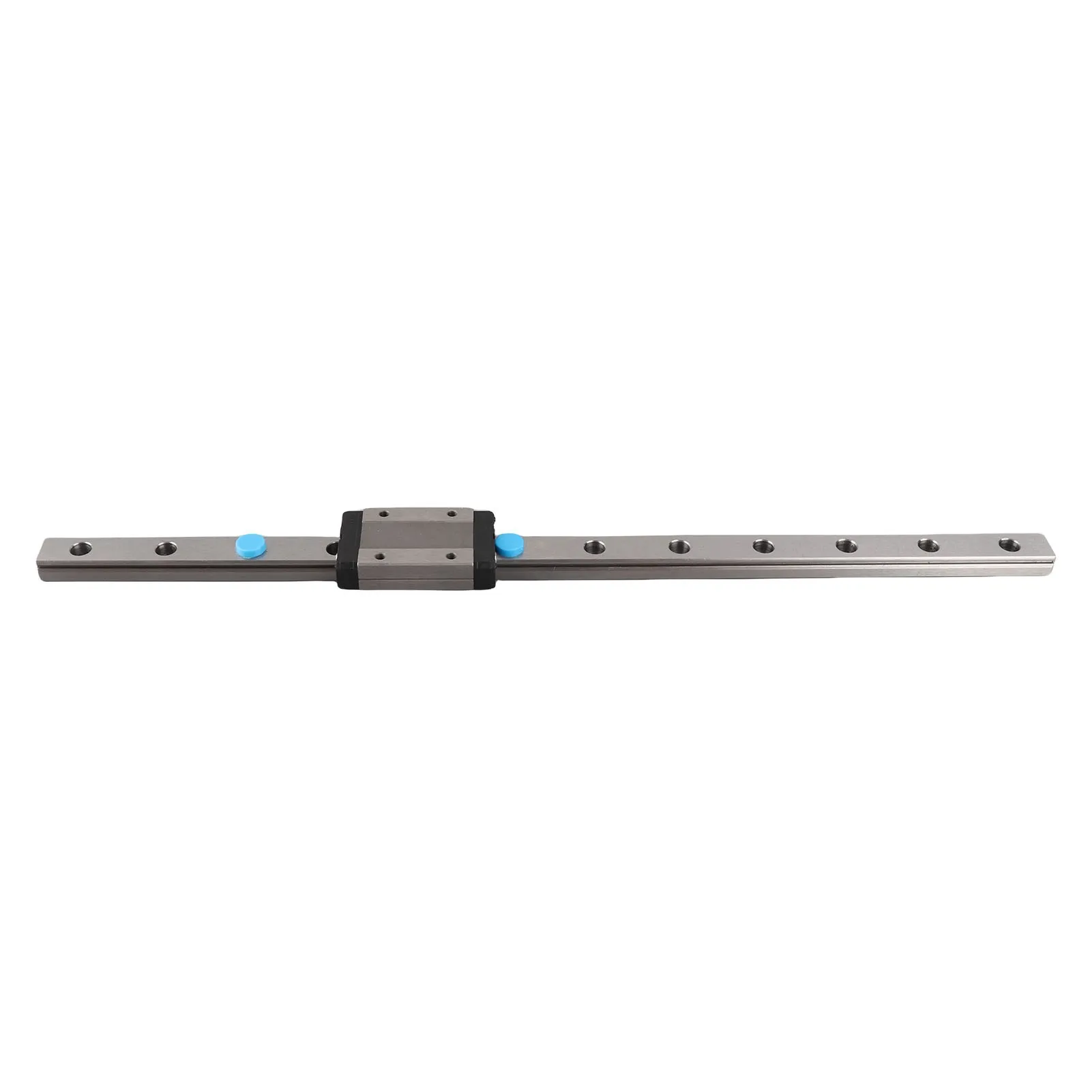 Enhance your automation projects with this high-precision miniature linear sliding rail guide system available in lengths of approximately 250mm, 300mm, 400mm, 500mm, and 550mm. Made from durable metal, it features a sleek, metallic silver guide rail with a polished finish and a black slide block designed for smooth, light movement. Supporting an accuracy level of H and compatible with M6 rail screws and M3 block screws (not included), this lightweight system weighs between 217 and 417 grams. Its minimalist, professional design ensures reliable performance in tight spaces, making it an ideal choice for precise, durable, and easy-to-install automation equipment.