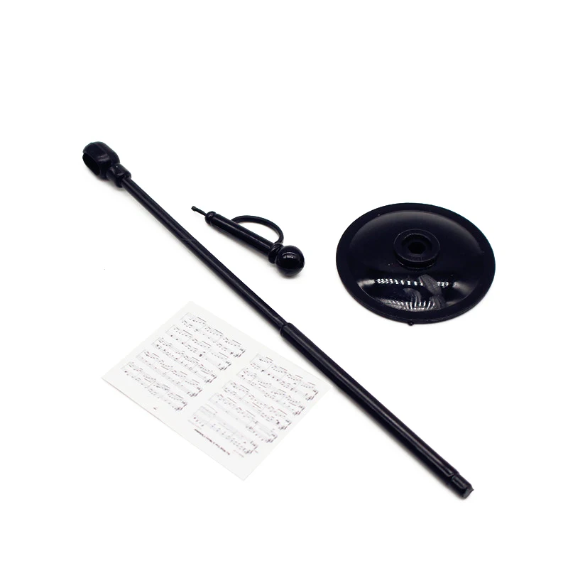 Immerse yourself in the charm of this realistic dollhouse miniature set, perfect for any music-themed scene. Crafted from durable plastic, these finely detailed accessories add a touch of elegance to your miniature collection. The tall, slender black microphone stand measures 14 cm (5.51″) in height with a 3.6 cm (1.42″) wide round base, mimicking real hardware with textured details like segmented poles and a rounded mesh microphone head. Accompanying it is a miniature sheet music measuring 3 cm (1.18″) long and 4 cm (1.57″) wide, intricately printed with tiny musical notes on staff lines for authentic realism. Designed for 1:12 scale dollhouses, these pieces bring a refined musical atmosphere to your miniature world, elevating your creative displays or diorama setups.
