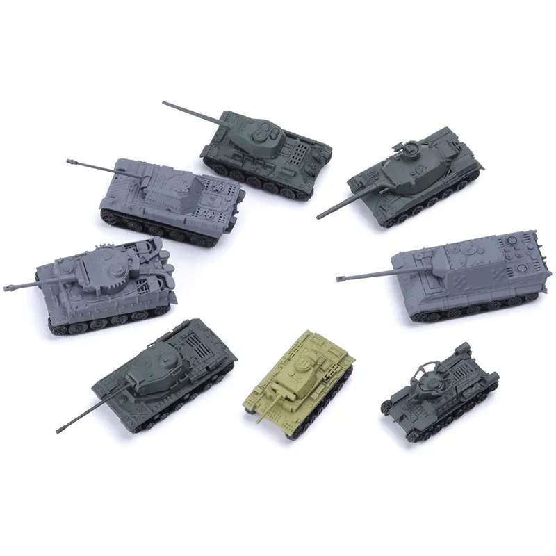This 1:144 scale plastic model kit features semi-assembled military tanks including Tiger, Panther, T34, AMX-30, and more, crafted from durable PS plastic. Designed for collectors aged 14 and above, it offers detailed surface textures, realistic turret shapes, and subdued military colors like dark gray, light gray, and beige-yellow, capturing a rugged tactical aesthetic. The kit includes models in various color variants such as NO1 Zhong Hu, NO2 Lie Hu, and NO3 T34. It ships as one piece without an original box, perfect for display and collection purposes, and emphasizes realism with finely detailed panel lines, textured tracks, and a sturdy construction suitable for enthusiasts seeking a true military miniature experience.