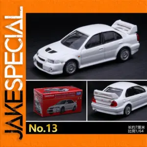 Experience the thrill of racing with this meticulously crafted miniature of the Mitsubishi Lancer Evolution VI GSR. Measuring approximately 7 centimeters in length, this diecast alloy model captures every detail of the iconic sports car. Its realistic white body features sleek, aerodynamic contours highlighted by subtle lines and curves that emulate the real vehicle’s powerful stance. The clear headlights, red and white taillights, and black mesh grille enrich its visual authenticity. Silver multi-spoke rims on textured black tires lend a refined, dynamic appearance. With a prominent rear spoiler and black accents on vents and window trims, this model exudes a sporty, race-ready aesthetic. Perfect for display, collection, or imaginative play.