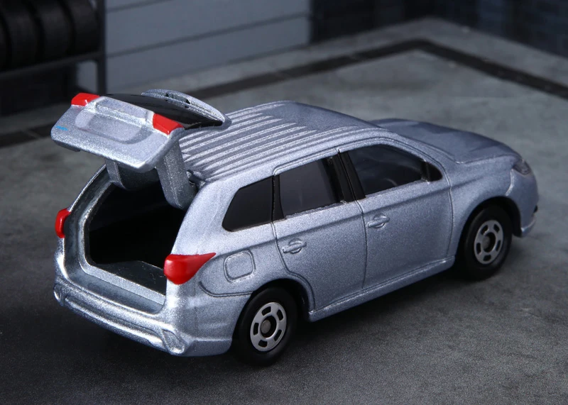 - The metallic silver-blue finish provides a sleek, modern look that vividly captures the original Mitsubishi Outlander PHEV’s style, making it a striking display piece.