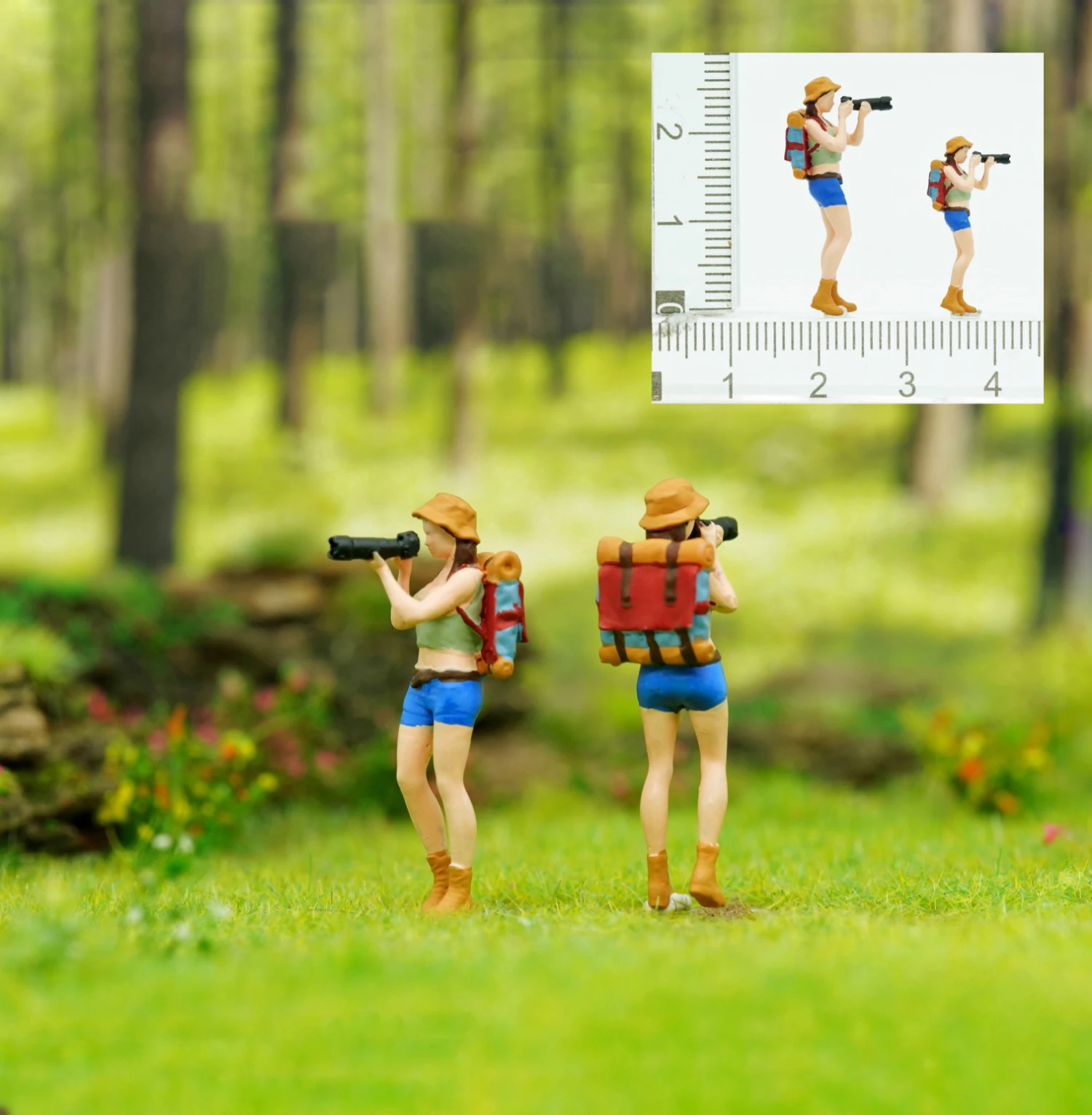 - The figurine is part of a 20-piece set offering variety, including 7 different unisex styles, all suitable for landscape scenes with an active outdoor theme in dioramas.
