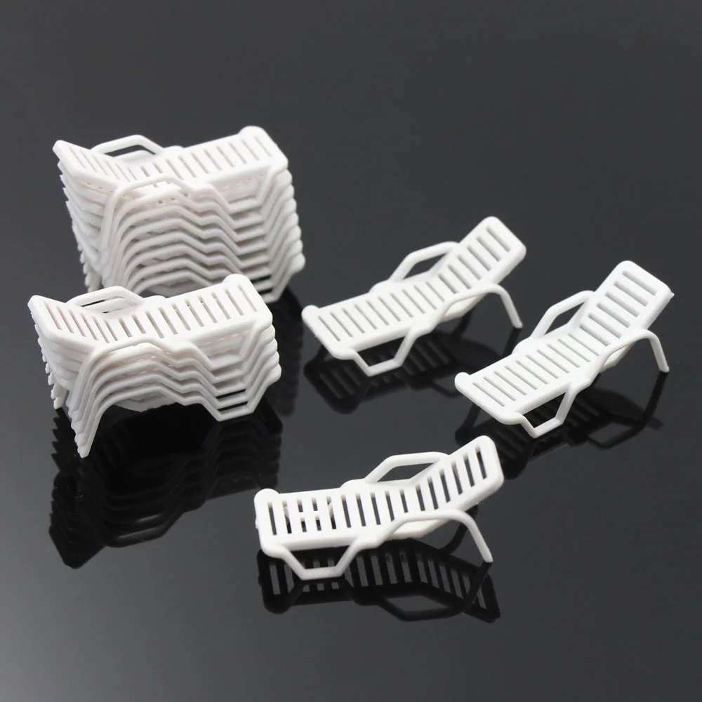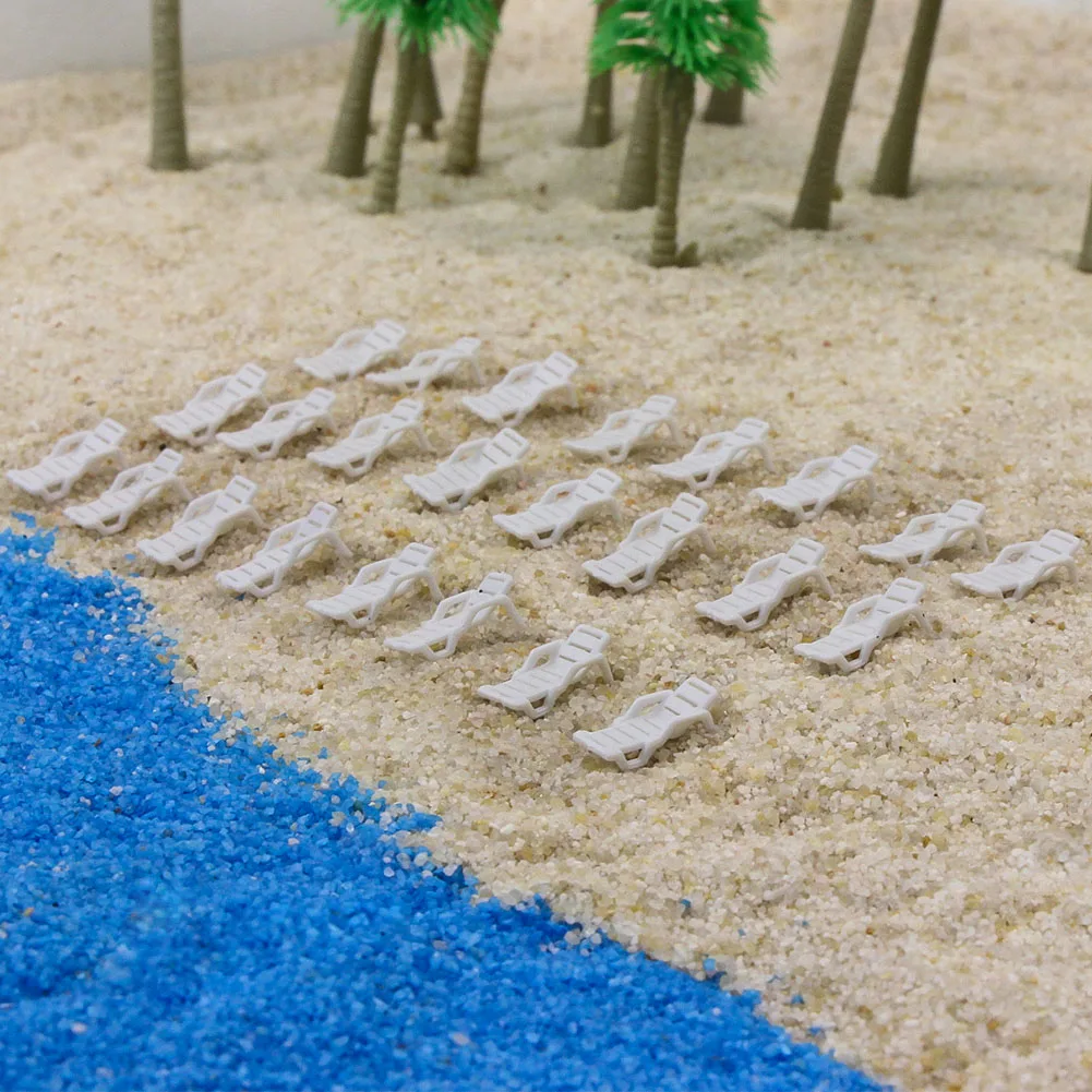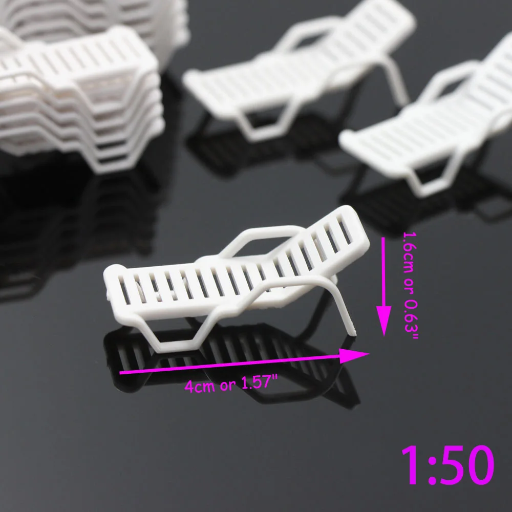 Create a realistic outdoor scene with this set of 24 high-detailed model loungers, perfect for enhancing railway and building layouts in scales 1:50 (O scale), 1:75 (OO scale), 1:100 (TT scale), 1:150 (N scale), and 1:200 (Z scale). Made from durable ABS plastic, these white loungers are proportionally designed for each scale, ideal for adding lifelike leisure areas in parks, station platforms, or streets. The set does not include figures or umbrellas, making them versatile and easy to incorporate into your custom dioramas. Suitable for hobbyists aged 12 and above, these loungers bring a touch of relaxation and realism to your model landscape.