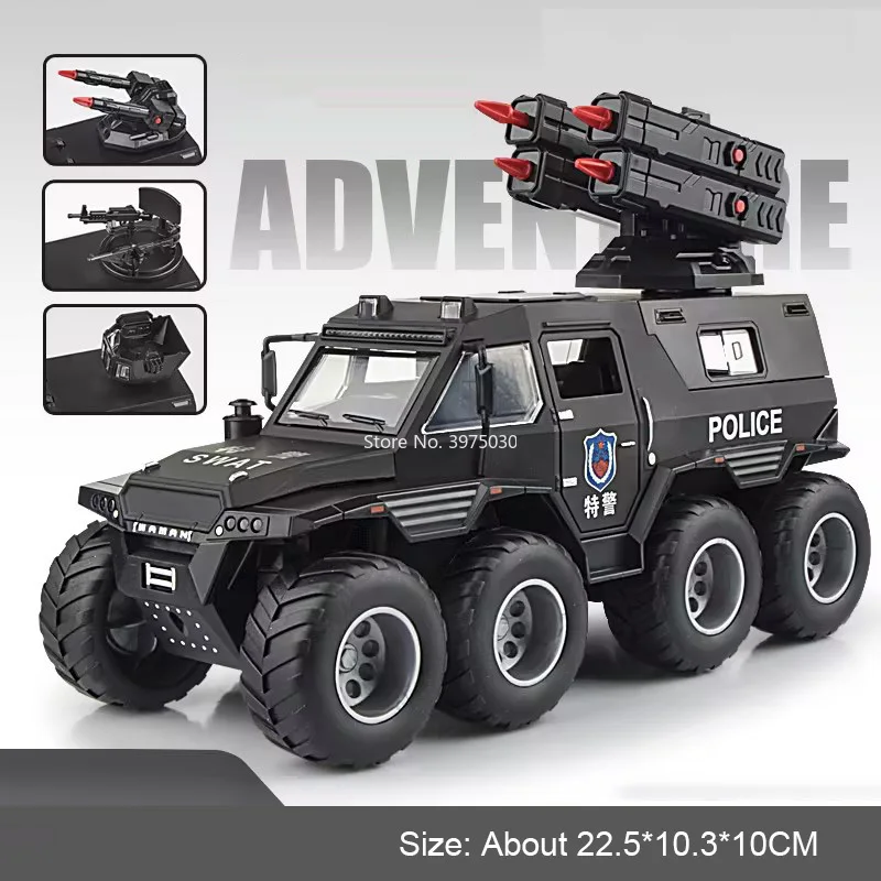 Experience the realism of this 1:24 scale miniature police car, measuring approximately 22.5 x 10.3 x 10 cm, crafted with a sturdy zinc metal body, plastic chassis, and durable rubber tires. Available in striking green and black colors, this high-simulation model features working doors that open, along with engaging sound and light effects. Its pull-back mechanism offers smooth, responsive play, while the alloy body ensures long-lasting durability. Perfect for collectors and enthusiasts alike, this detailed model is ready for display or active play, complete with batteries included for immediate enjoyment. Add a striking, lifelike touch to your collection today.