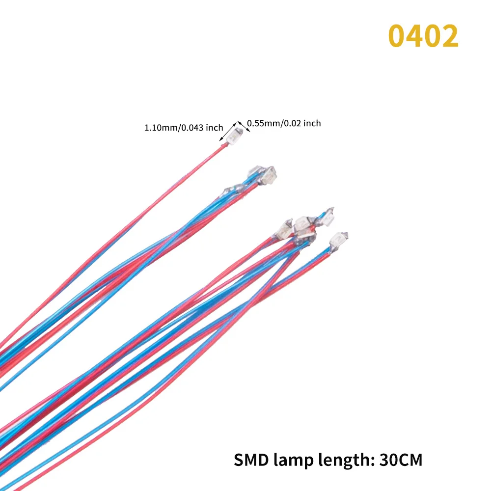 - Includes 10 pre-wired SMD LED chips in sizes 0402 and 0603, perfect for compact projects and precise installation in miniature models.