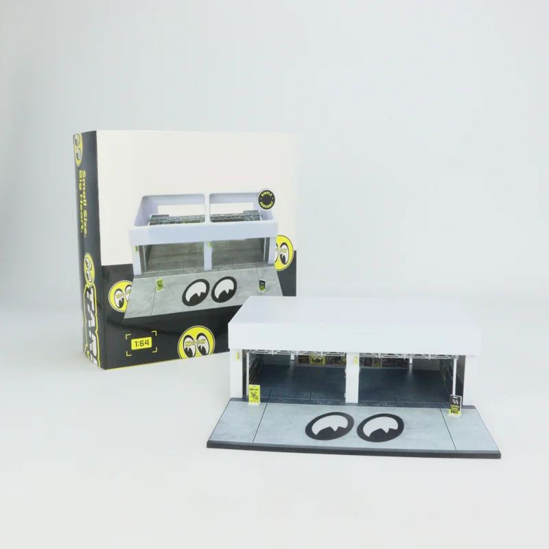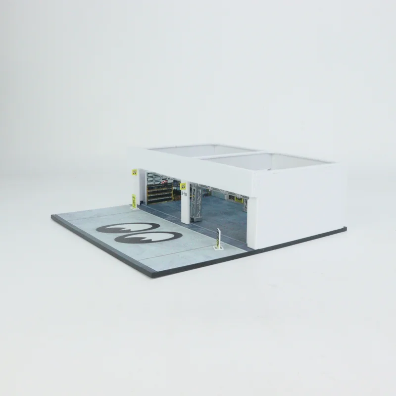 - Detailed replica of a 1:64 scale pit garage, measuring approximately 21.5 x 23.5 x 7.3 cm for an authentic display. Built from durable PVC material with precise craftsmanship.