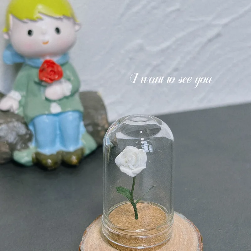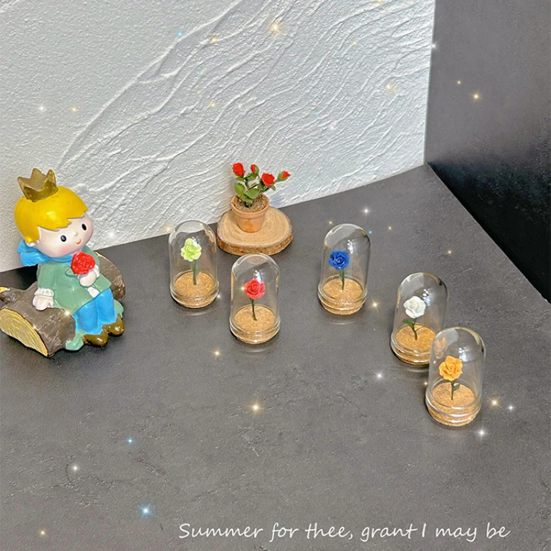 Enhance your dollhouse collection with this handcrafted miniature glass ornament featuring the iconic red rose from The Little Prince. Crafted from resin, this detailed potted plant is designed for 1/6 and 1/12 scale dollhouses, showcasing vibrant shades such as K146-B, E, K146-A, A, K146-D, K146-C, C, D, and B. The clear cylindrical glass encases a delicate, realistic red rose attached to a slender green stem with small leaves, resting atop a beige or sandy-colored base mimicking soil. Perfect for collectors and hobbyists aged 14 and above, this charming accessory combines craftsmanship and vivid color for a whimsical addition to your miniature world.