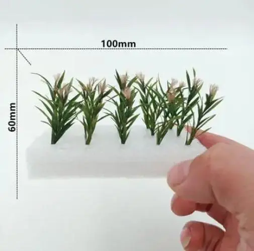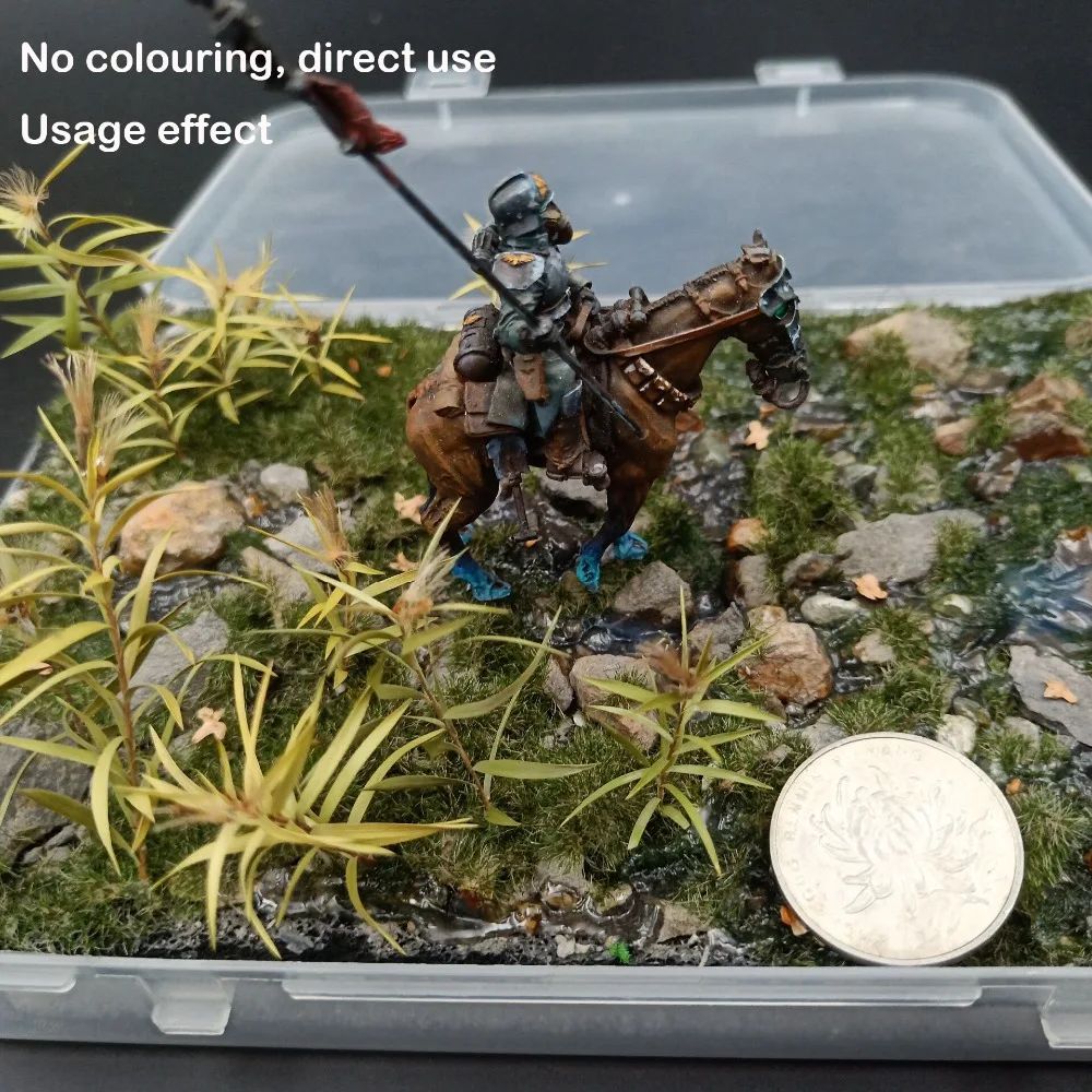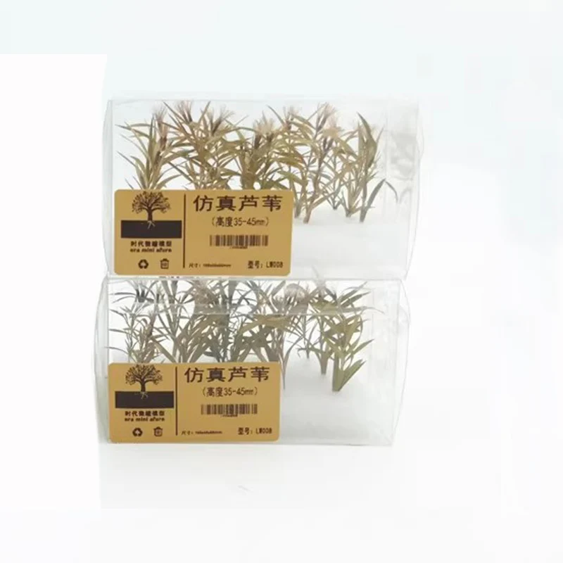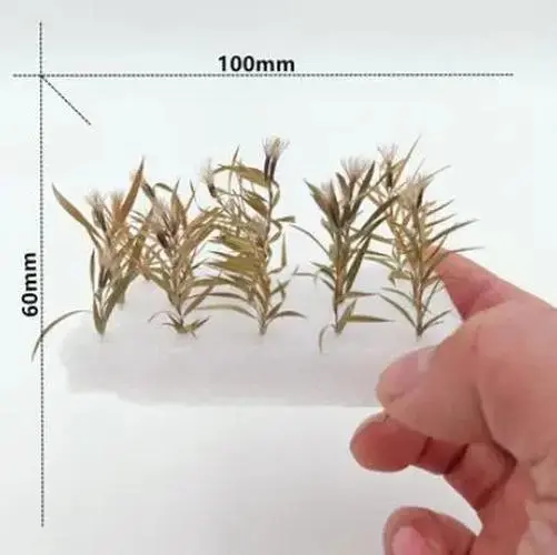 Enhance your model displays with this set of miniature simulated reed grass, ideal for sand table DIY projects. Each of the four clear plastic boxes contains 15 pieces crafted from resin, bamboo, and plastic, featuring realistic shades of summer green and withered yellow. Standing at a height of 3-4 cm, these models are designed for immediate use without any painting required. They are compatible with scales 1:50, 1:32, 1:43, and 1:24, making them perfect for various themes including nature, military, and historical settings. Transform your dioramas with this lifelike vegetation and elevate your modeling experience.