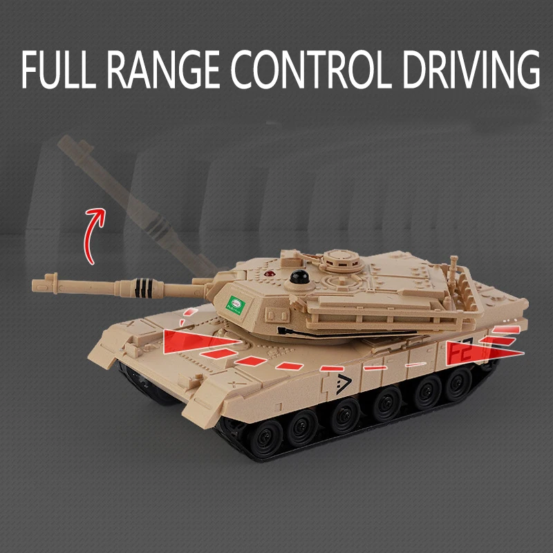 - Supports multiplayer infrared battles, with hit detection via flashing indicator lights, where multiple hits cause spin-outs and a final hit freezes the tank temporarily for realistic gameplay.
