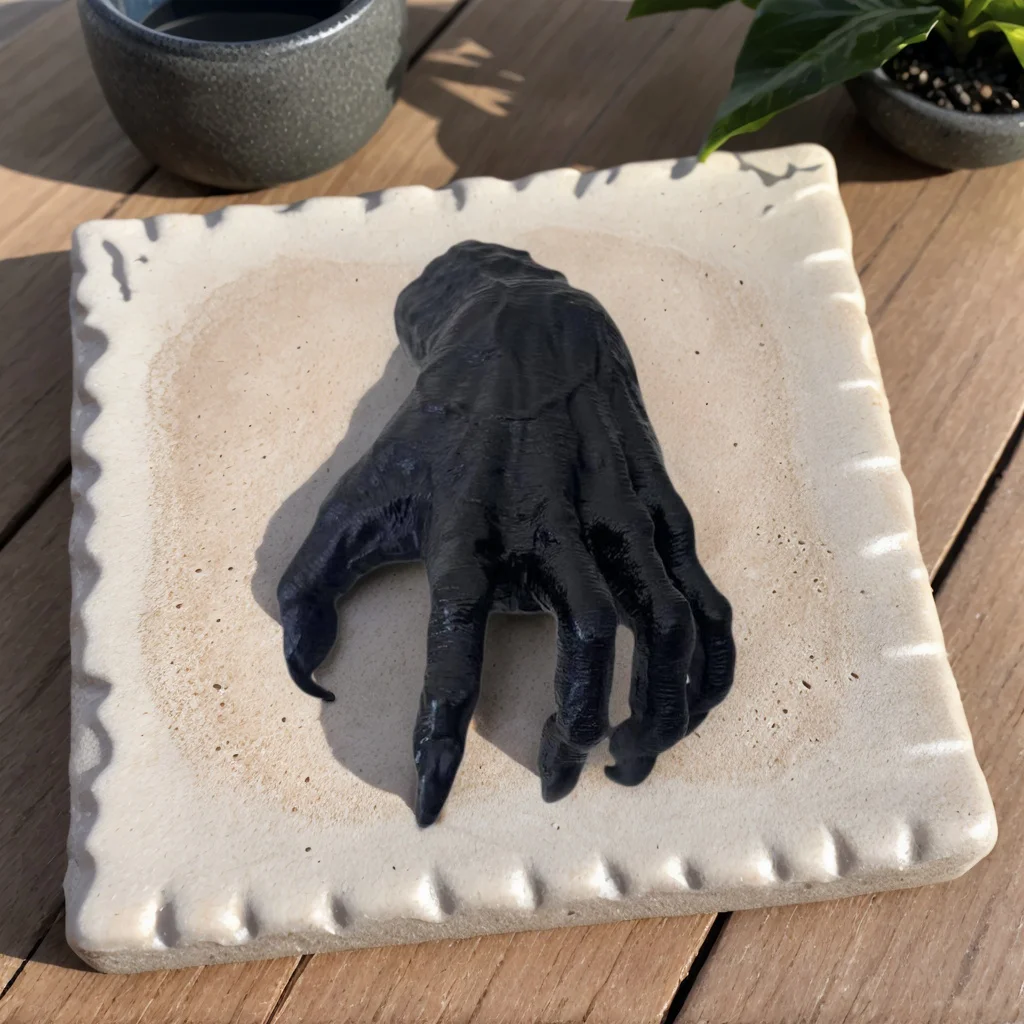 - This handcrafted resin ghost hand is highly detailed, showcasing realistic knuckles and textured surface for an authentic, spooky look, perfect for striking Halloween decorations or themed party props.