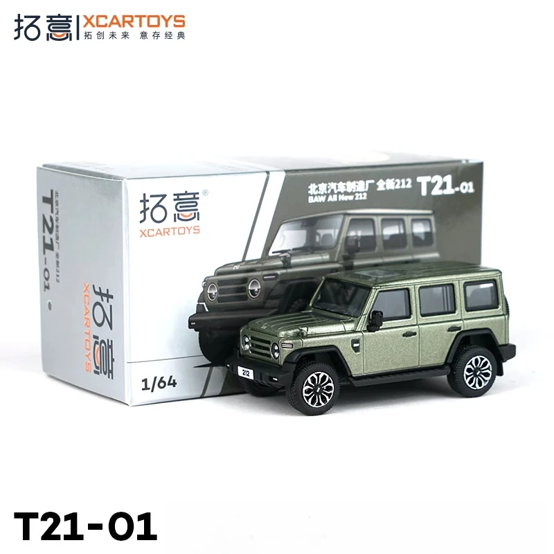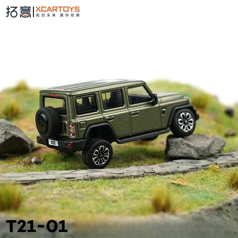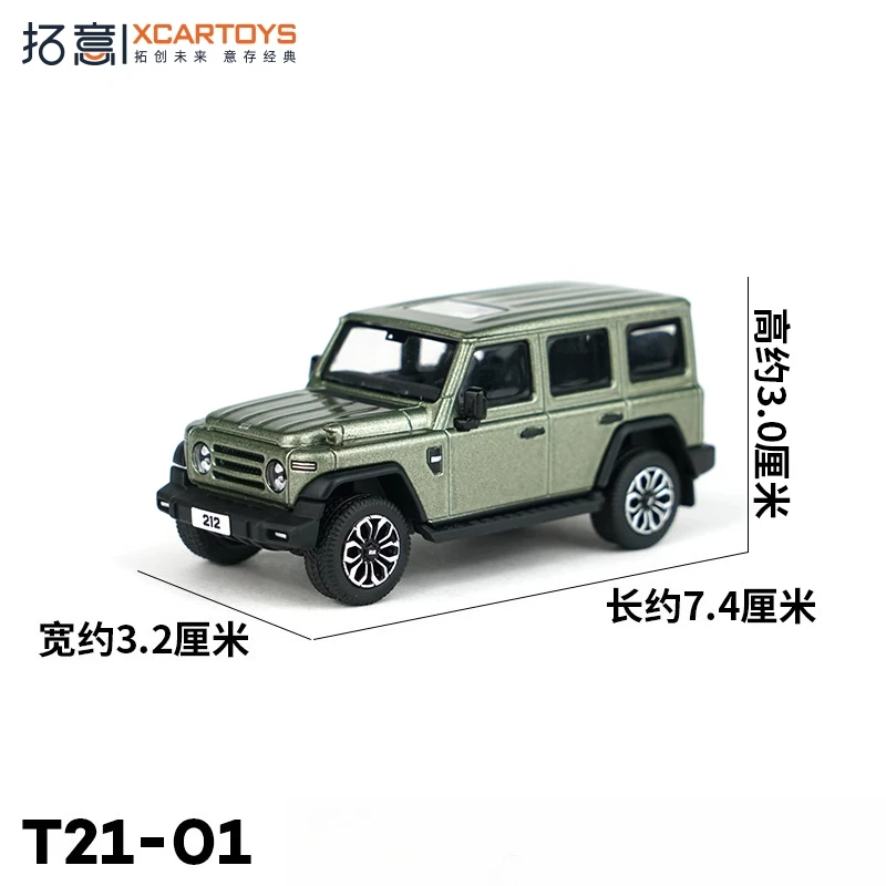 Experience the rugged charm of this 1:64 scale diecast SUV model, crafted from durable metal and finished in a matte olive green hue labeled T21-01. Its boxy, off-road-inspired design features a detailed grille, black bumper accents, smoked or clear tinted windows, and multi-spoke alloy-style rims with black and silver tones. The textured tires and angular shape evoke adventure and durability, making it an ideal collectible for enthusiasts. Non-electric and suitable for ages 14+, this sturdy miniature captures the essence of utility vehicles, perfect for display or as a thoughtful gift that brings a touch of rugged terrain to your collection.