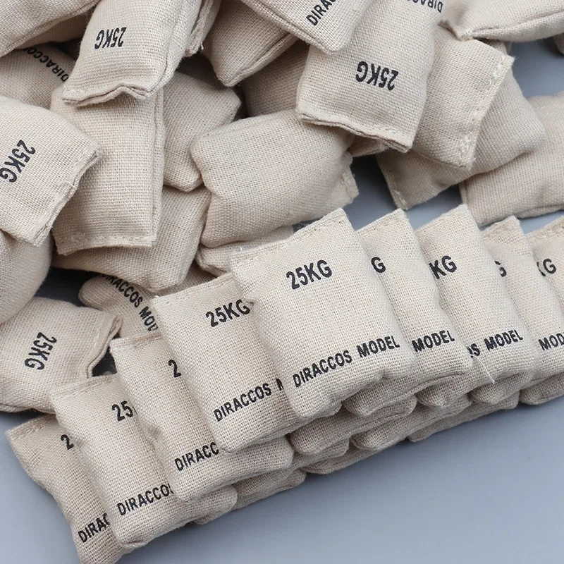 Experience the authentic look of military dioramas with this high-quality set of six miniature sandbags. Made from durable fabric and clay materials, these sandbags feature a natural cream or light beige hue that closely resembles real sandbags used in combat scenarios. Each bag is printed with clear black text displaying “25KG” and “DIRACCOS MODEL,” adding a touch of realism. Designed to fit seamlessly with 1/16 Heng Long RC tanks or 1/14 scale remote control vehicles, they offer a rugged, military aesthetic. Perfect for enhancing your model scene, these miniature sandbags are easy to position for impressive dioramatic effects, enabling you to bring your scale models to life with authentic detail and craftsmanship.