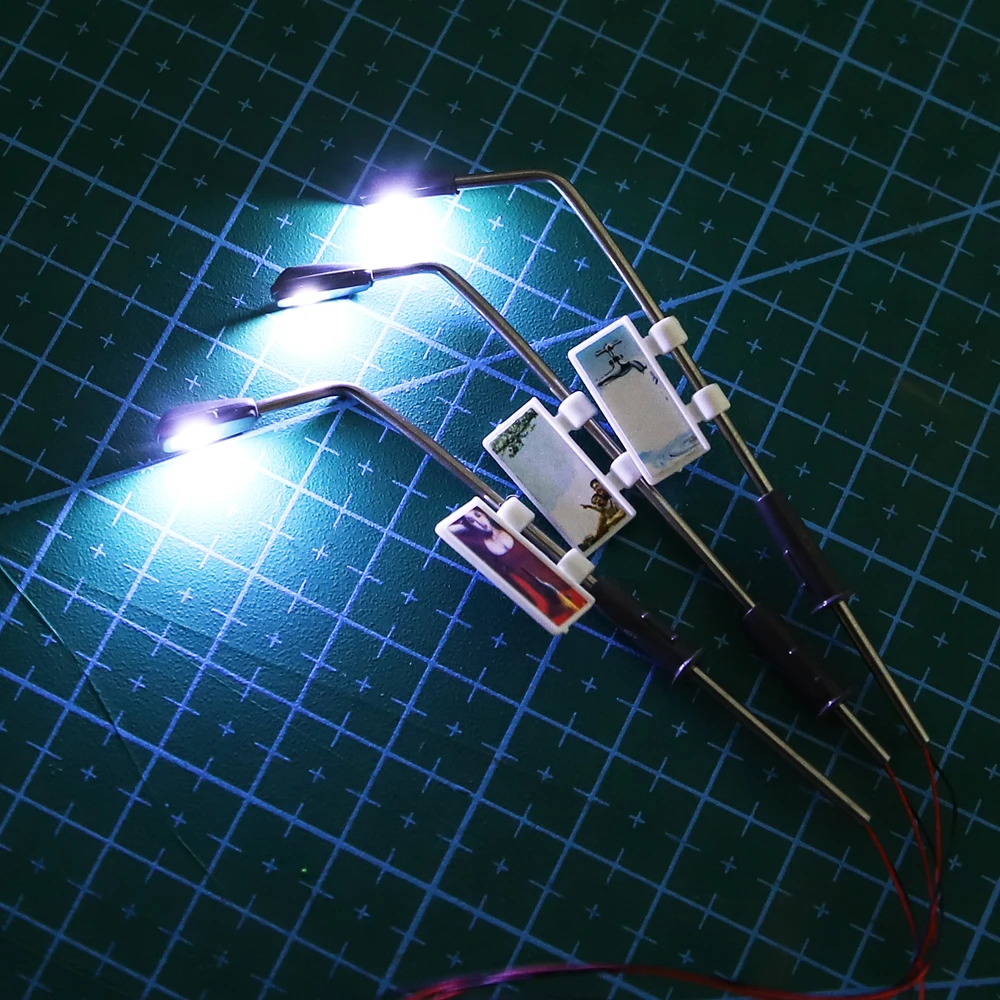 Transform your outdoor model displays with this set of realistic, high-quality miniature street lamps. Their sleek metallic finish and detailed design offer an authentic look, perfect for creating captivating dioramas or landscapes. Imagine how these tiny lamps will add a warm, inviting glow to your scenes, elevating your craftsmanship and attention to detail. Whether you're building a railway layout, a cityscape, or an outdoor tableau, these lamps are an essential, elegant addition. Order now and bring a touch of sophistication and realism to your scale models!