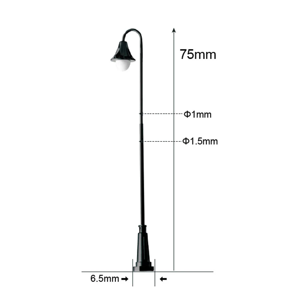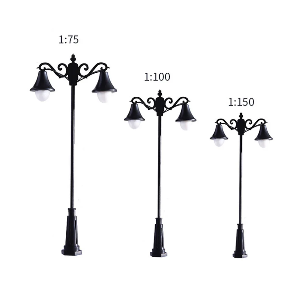 Elevate your miniature worlds with this captivating set of Miniature Scale Street Lamp Models, perfect for dioramas, sand table scenes, or micro landscapes. This collection includes five distinct lamp designs, each boasting elegant styling and intricate details. Whether you're looking for classic vintage aesthetics or modern minimalism, these lamps are made from durable ABS plastic and iron and feature adjustable bases for versatile display options. Available in various scales (1:75, 1:100, and 1:150), they operate flawlessly on a 12V voltage, ensuring warm light, cold light, or a beautiful combination, illuminating your scenes with charm.