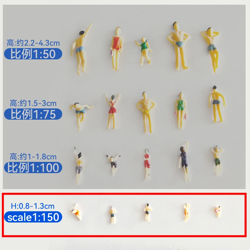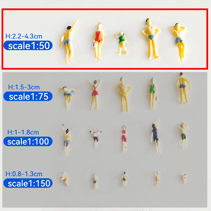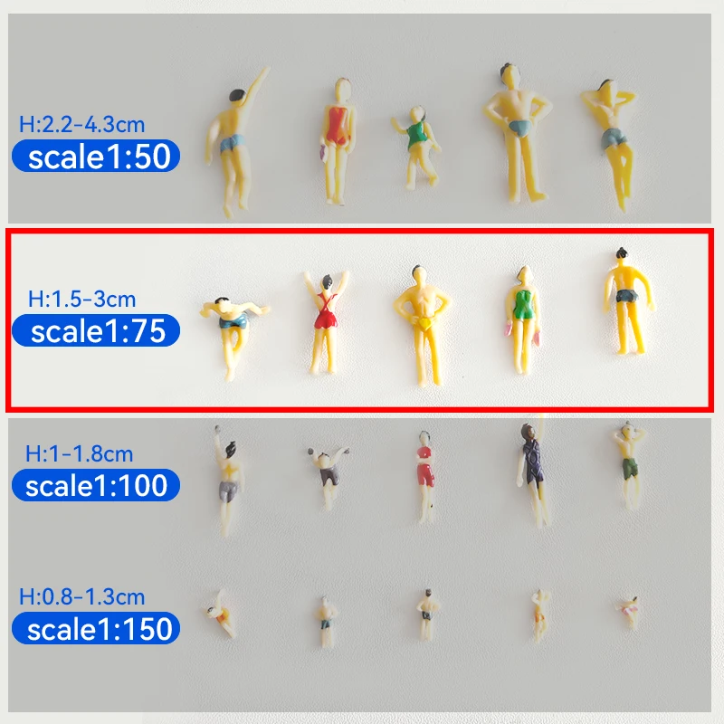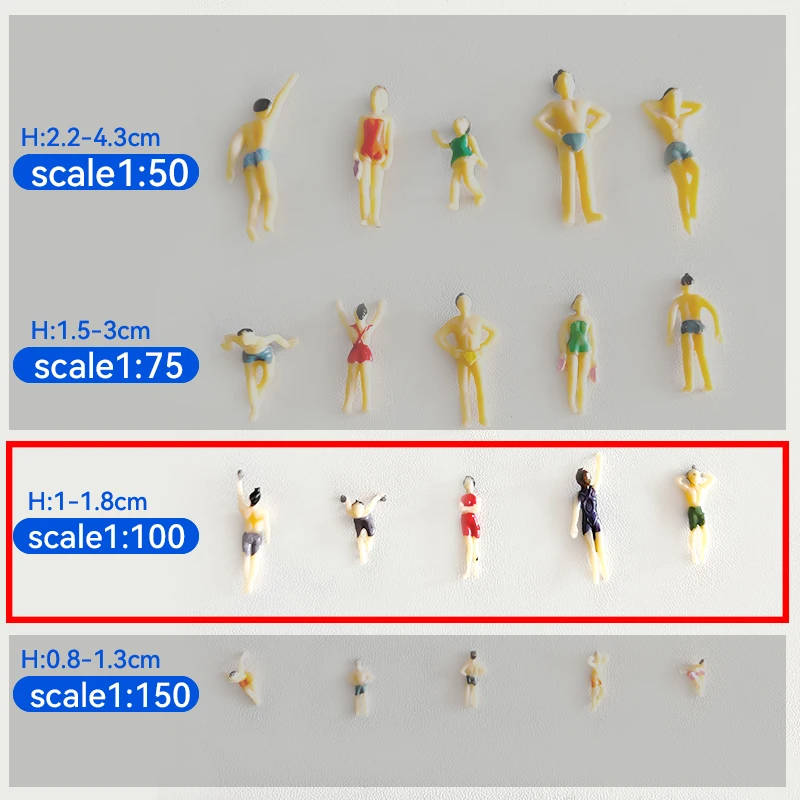 - Each figure measures approximately 1.8 cm, with an overall height of 2 cm, perfectly scaled for 1:100 miniature water and poolside scenes.