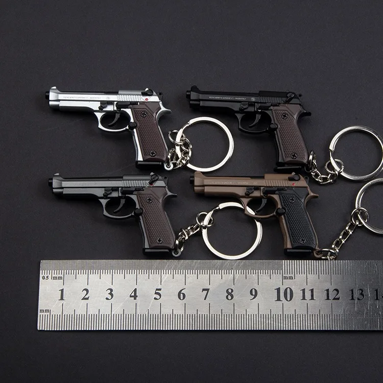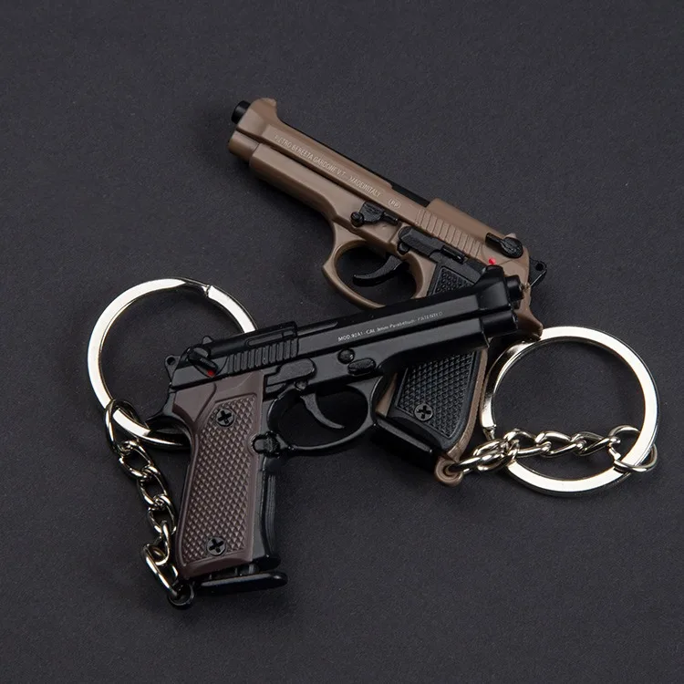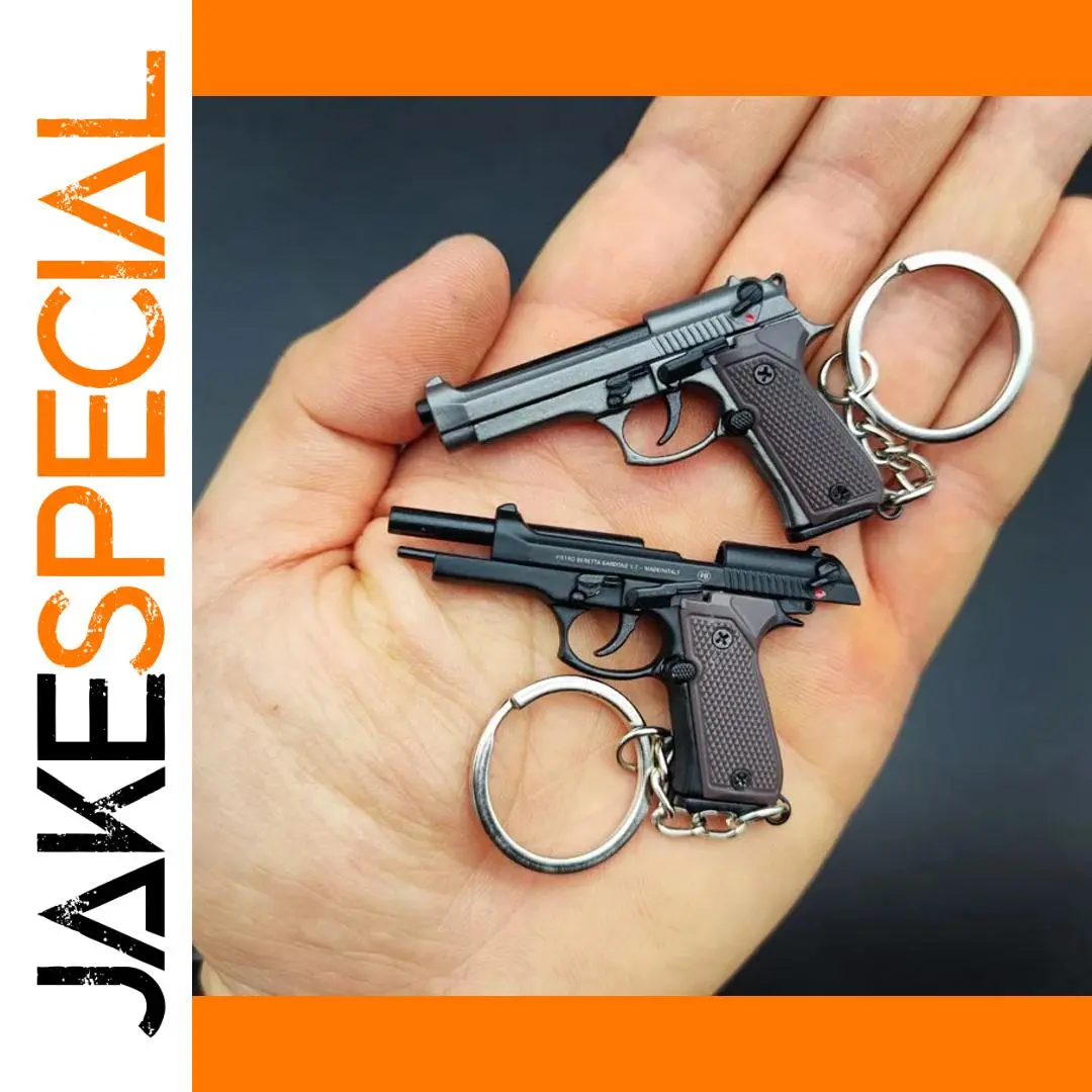 Elevate your accessory game with these miniature toy pistols designed as unique keychain pieces. Perfectly sized at 1:4 scale, each pistol features a sleek black finish with intricate details, such as textured grips and fine engravings. The semi-automatic model is complemented by a smaller, compact version, both attached to durable metal keychain rings for easy carry. Imagine having these eye-catching collectibles on your keys or bag, showcasing your love for novelty items. A fantastic gift for gun enthusiasts or a delightful addition to your personal collection, these keychain pistols are bound to spark conversations wherever you go.