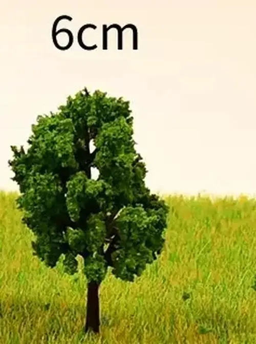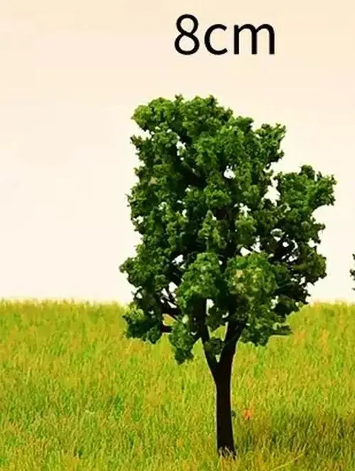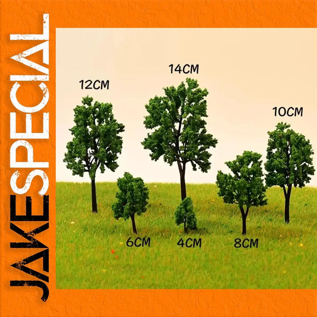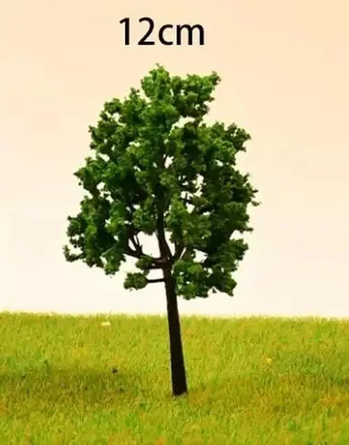 This set includes 30 pieces of artificial miniature trees, perfect for enriching your model scenery in HO and N scale landscapes. Crafted from durable plastic, these trees feature lush green foliage and dark brown trunks, available in five sizes: 4cm, 6cm, 8cm, 10cm, and 12cm. Each tree stands upright, adding realism to your dioramas and model train layouts. The versatile design allows for both finished tree displays and DIY model making. Ideal for creating beautiful, vibrant settings, these decorative plants are a must-have for any enthusiast looking to enhance their scenery.
