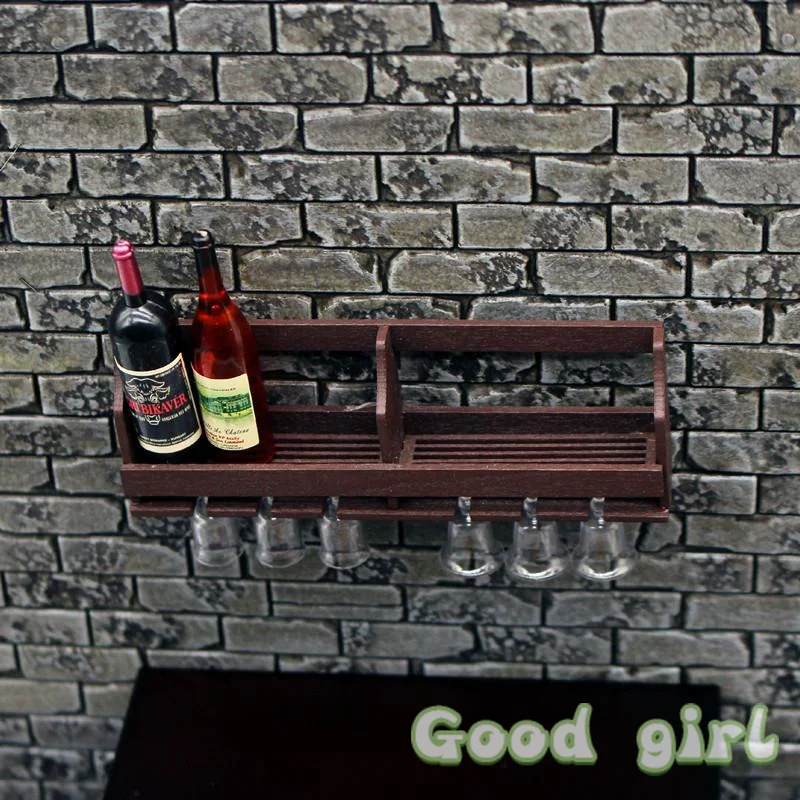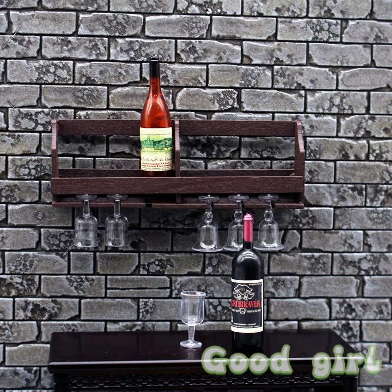 Step into a world of miniature charm with this miniature wall-mounted wine rack and cup holder set, specially designed for dollhouse lovers. Crafted from environmentally friendly wood and resin, it features a sleek, modern aesthetic with a dark brown finish that closely mimics real wood, adding sophistication to any miniature scene. The clean, rectangular structure is adorned with a functional shelf for small bottles and a horizontal bar with six clear miniature glasses hanging upside down, delivering a realistic display. Perfect for creating a contemporary, refined atmosphere in dollhouses, this set is also designed for easy installation on walls or flat surfaces. It combines fine craftsmanship with minimalist elegance, making your miniature setting feel both authentic and stylish.