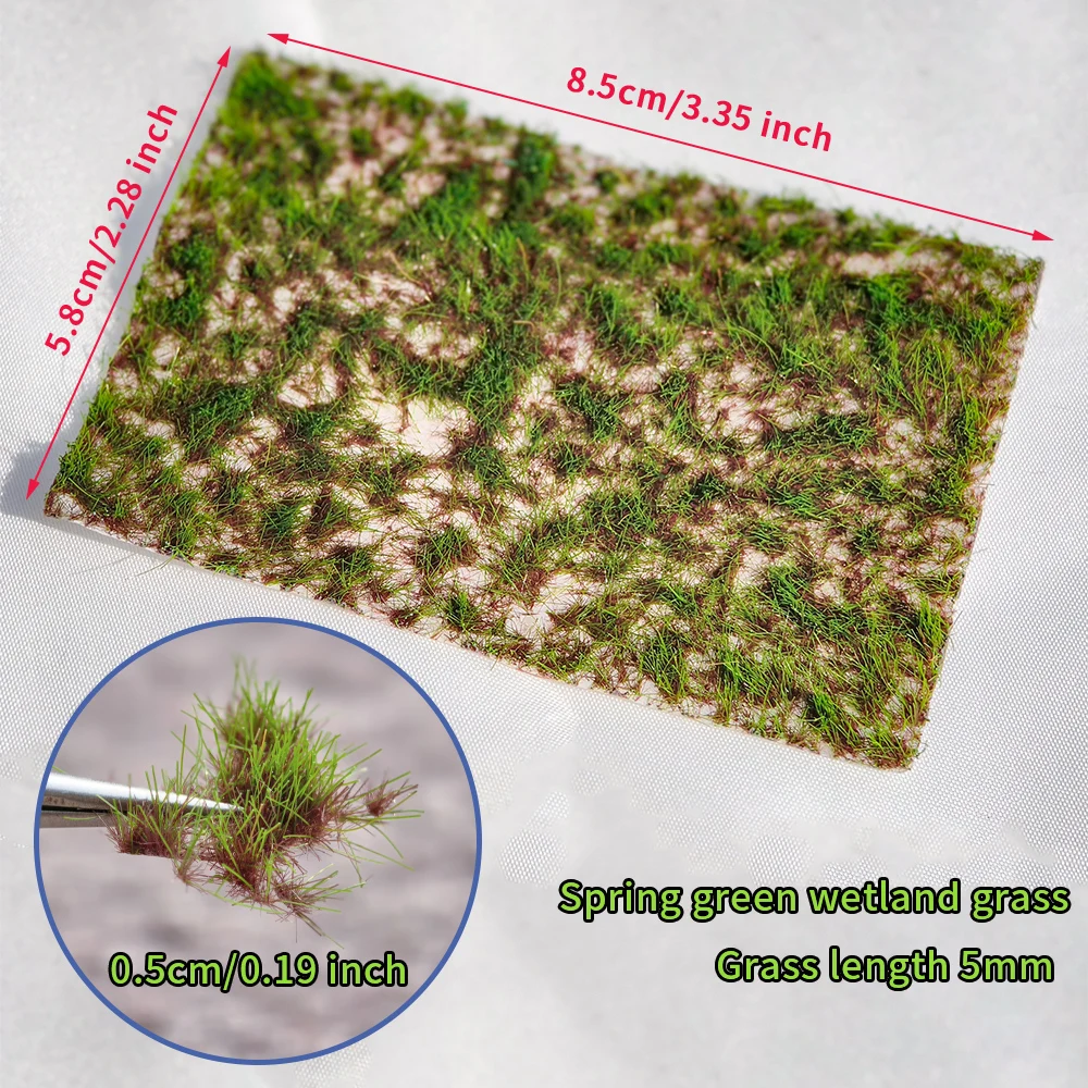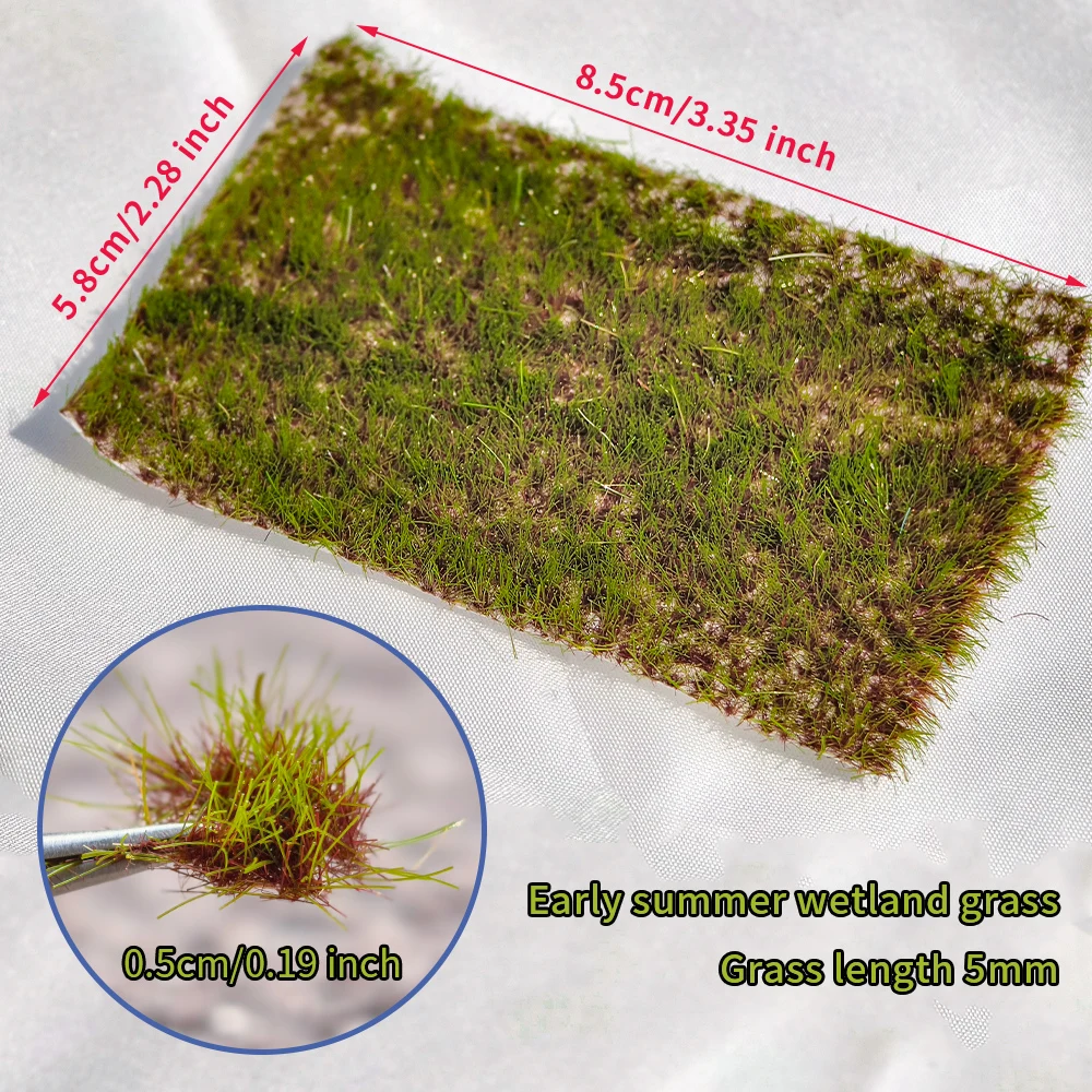 - Each cluster measures about 8.5cm by 5.8cm with 5mm textured grass blades, ideal for creating realistic wetlands and terrain features in various scenery projects.