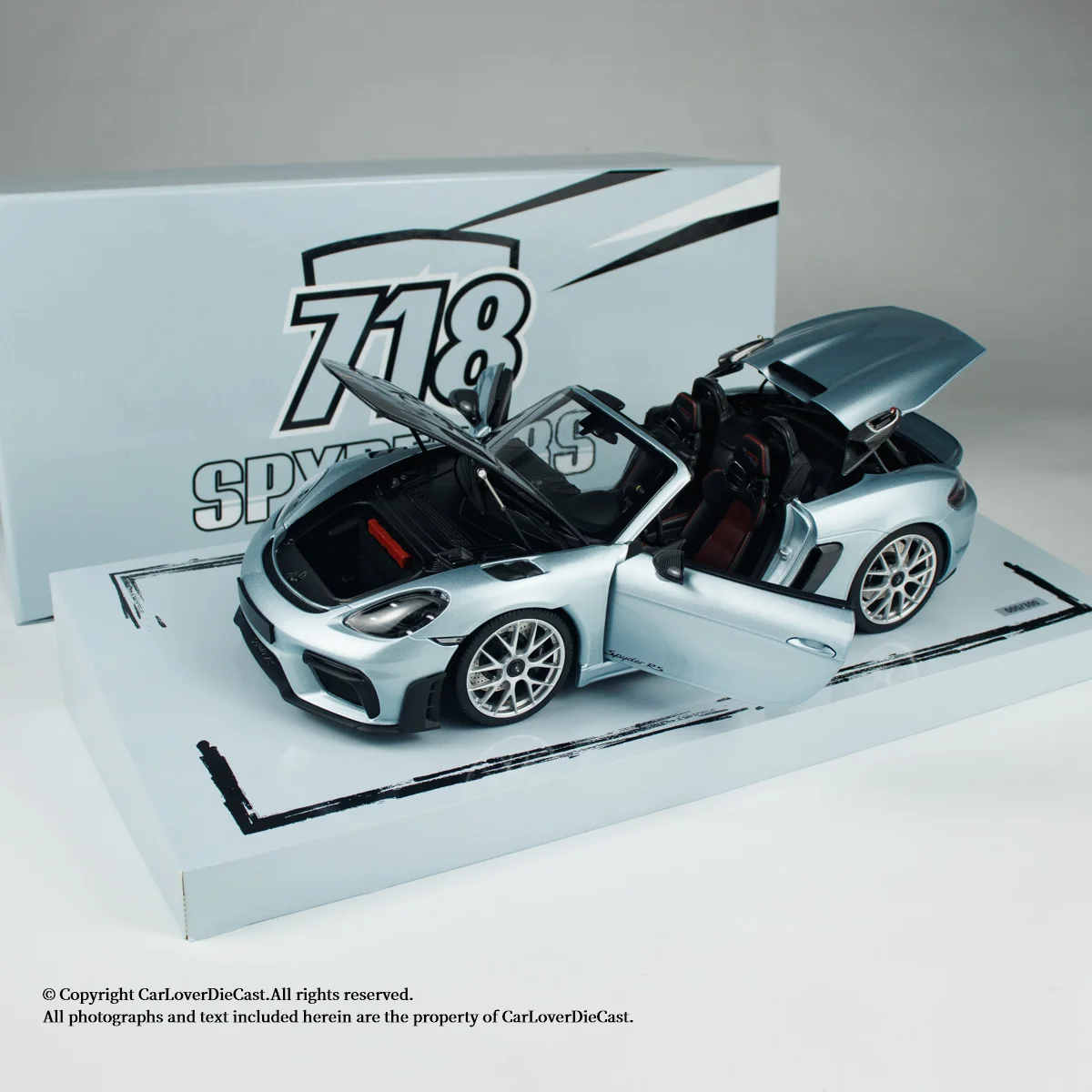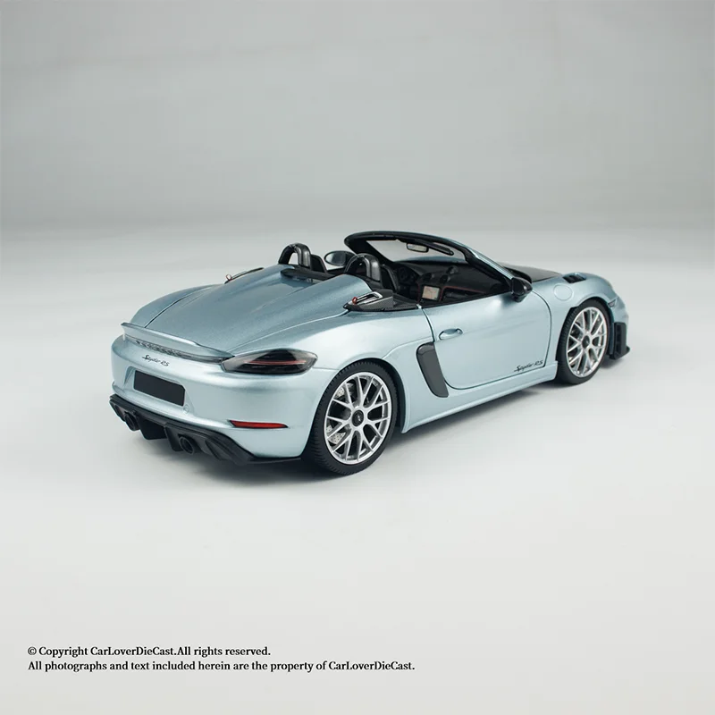 - This 1:18 scale model is crafted from metallic alloy, replicating the sleek and refined design of the actual Porsche 718 Rs Spyder with intricate precision and high-quality finish.
